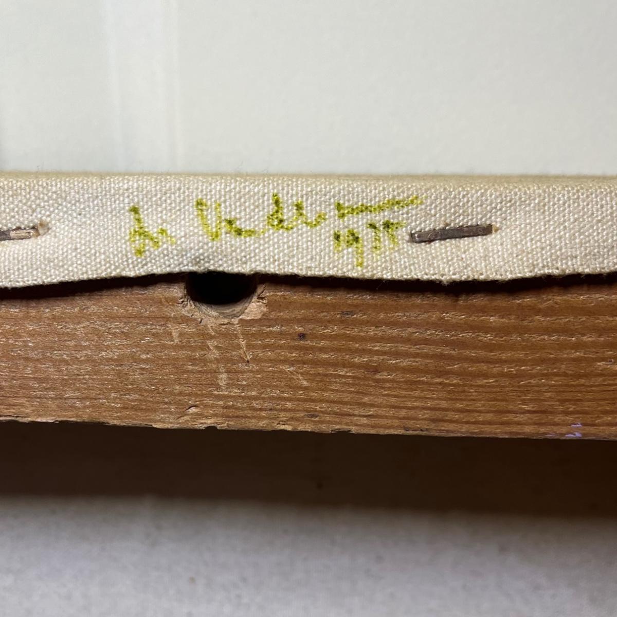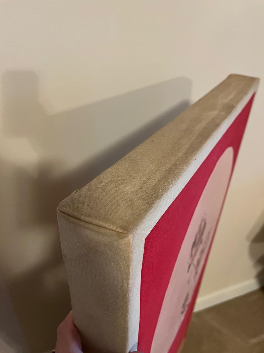 Unique canvas painting measures approximately 21” x 2.25” x 48”H. The edges are fairly dirty but might be easily cleaned?