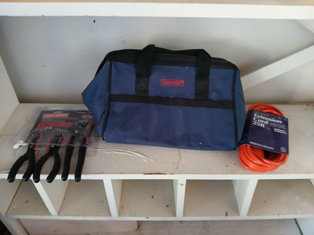 Canvass Craftsman tool bag with new extension cord and Craftsman pier set
