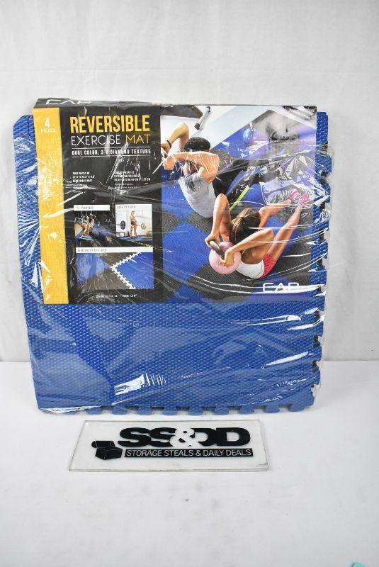 CAP High Density Reversible 4-Piece 13.7 Sq Ft Puzzle Exercise Mat, Gray/Blue