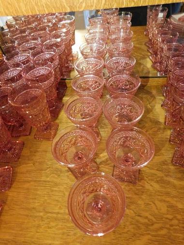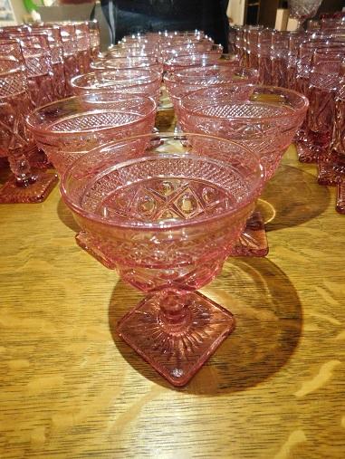 Cape Cod Azalea (Cranberry) Sherbert Dish with Fancy Stem Approximately 9pcs.