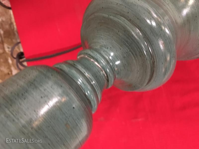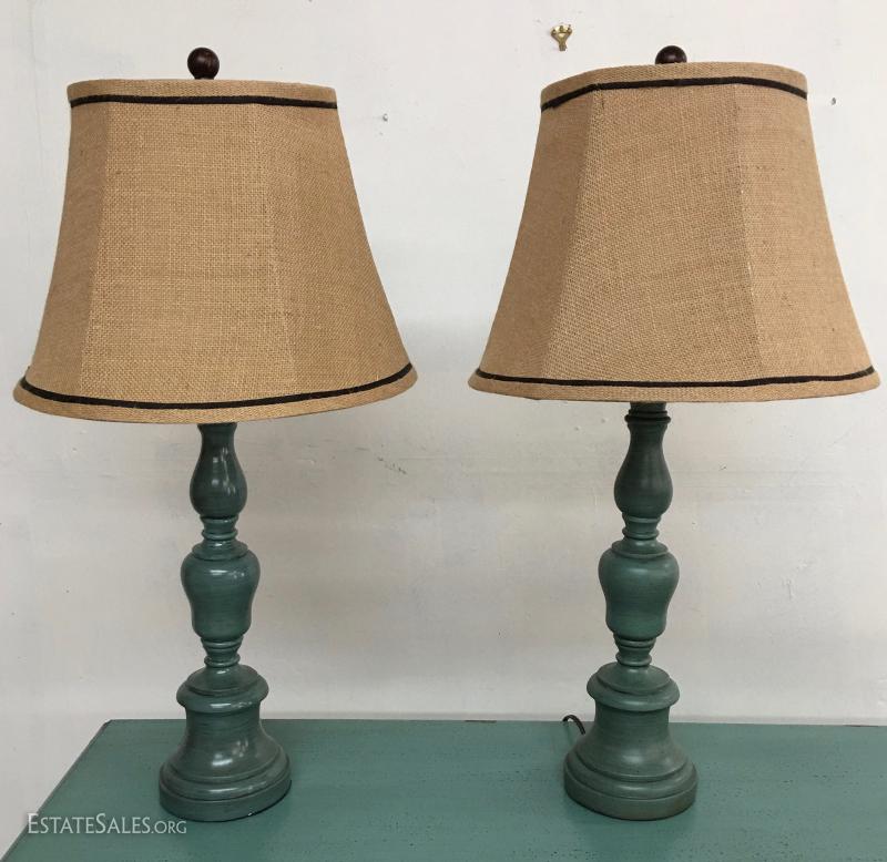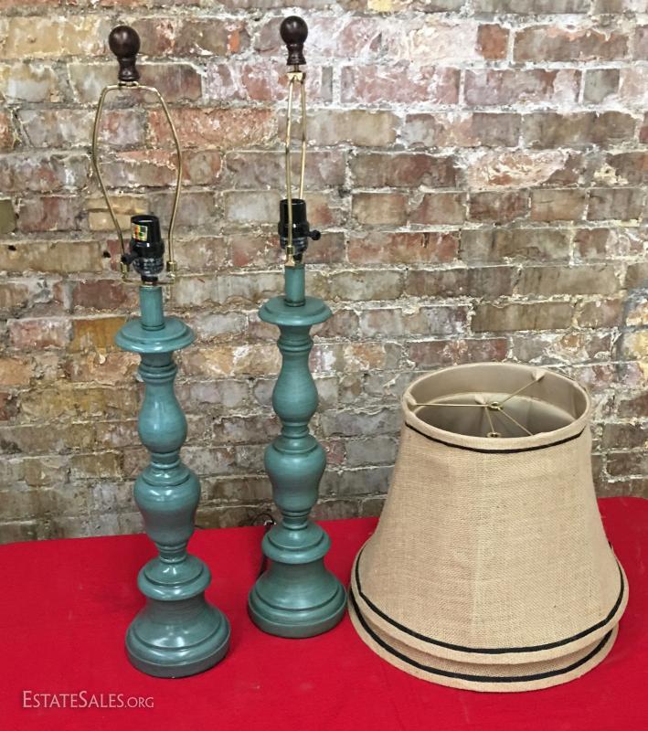 Pair of lamps with shades, 32" tall, one is cracked on the base see photos.