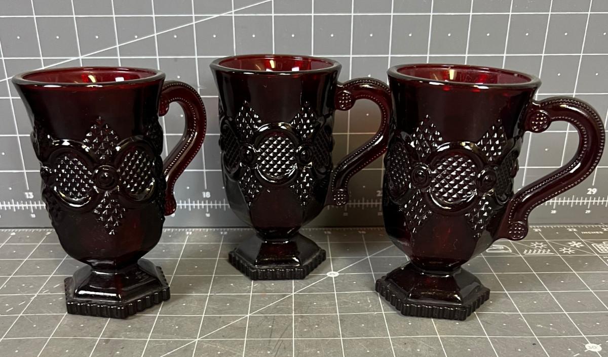 Cape Cod Coffee Cups Red Glass (3)