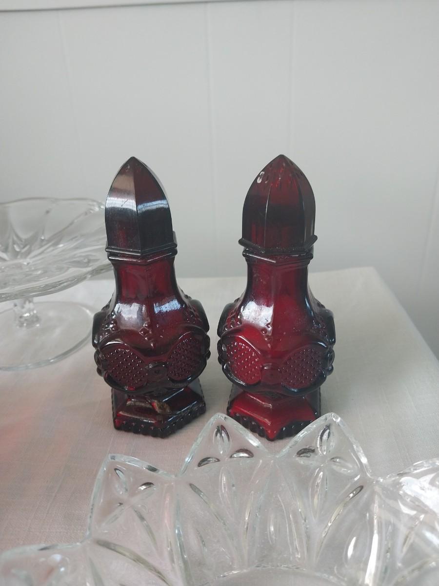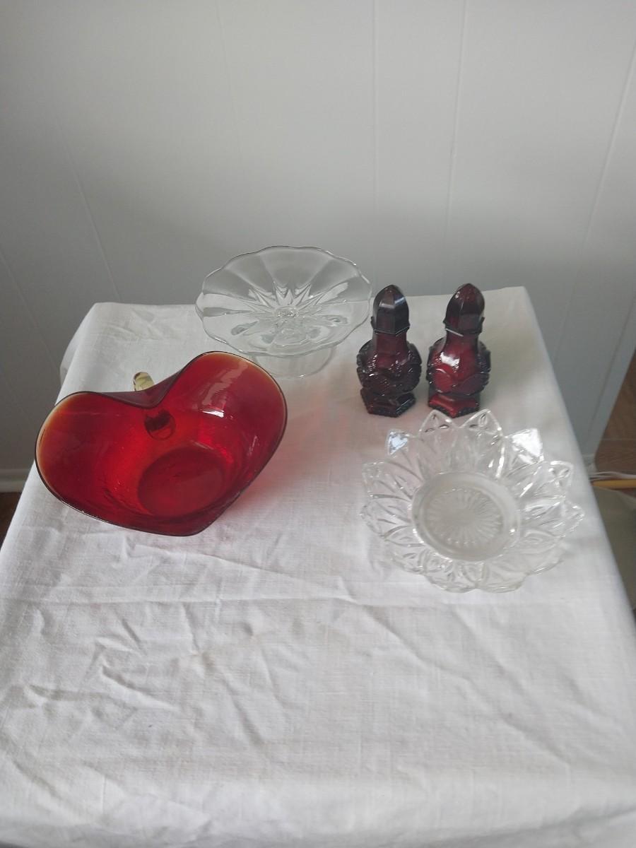 CAPE COD SALT & PEPPER SHAKERS AND GLASS CANDY DISHES