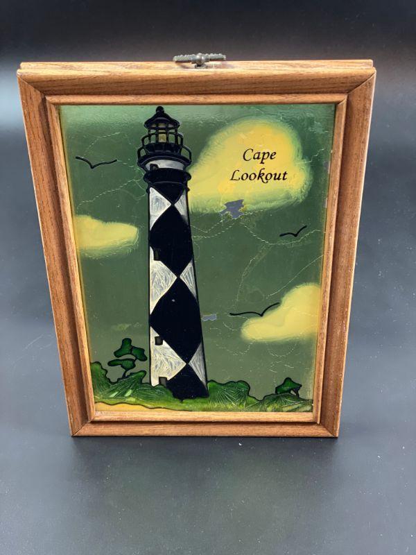 CAPE LOOKOUT LIGHTHOUSE GLASS FRAMED