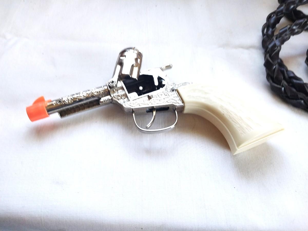 CAPGUN-LEATHER WHIP-KIDS BELT AND BUCKLE AND COLLECTERS CRAYONS