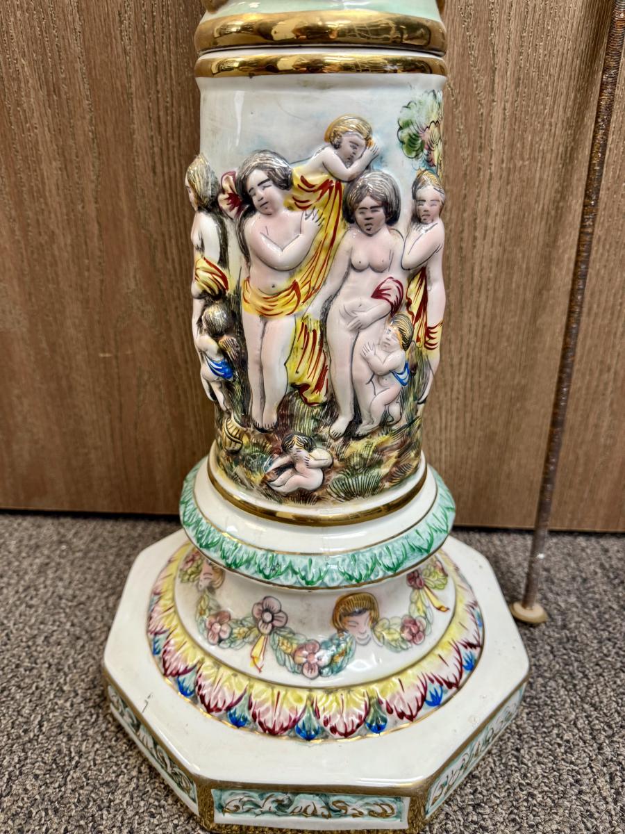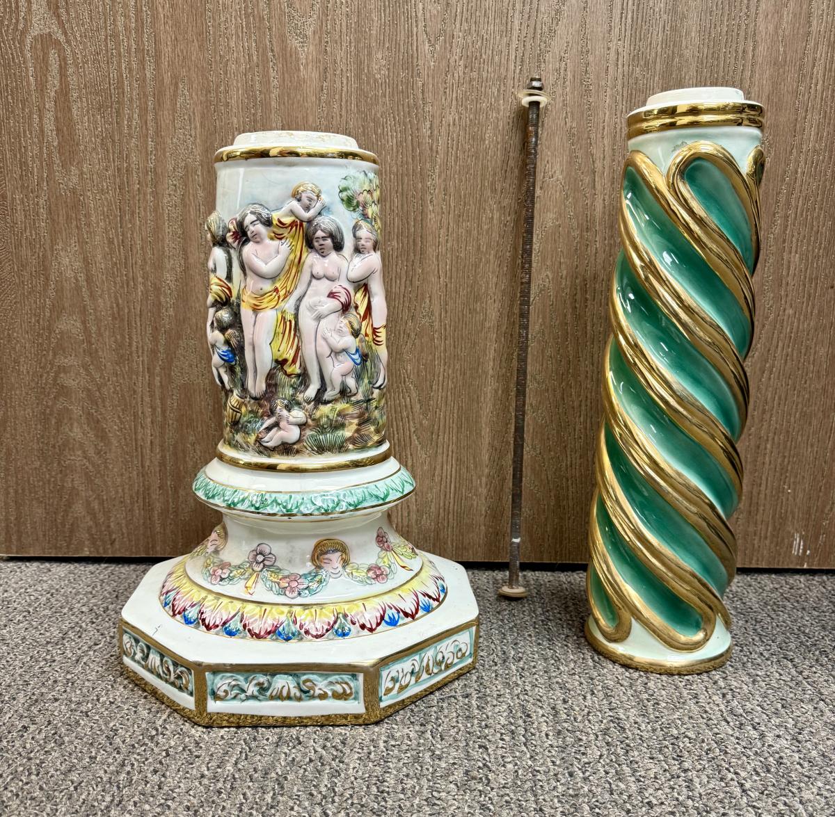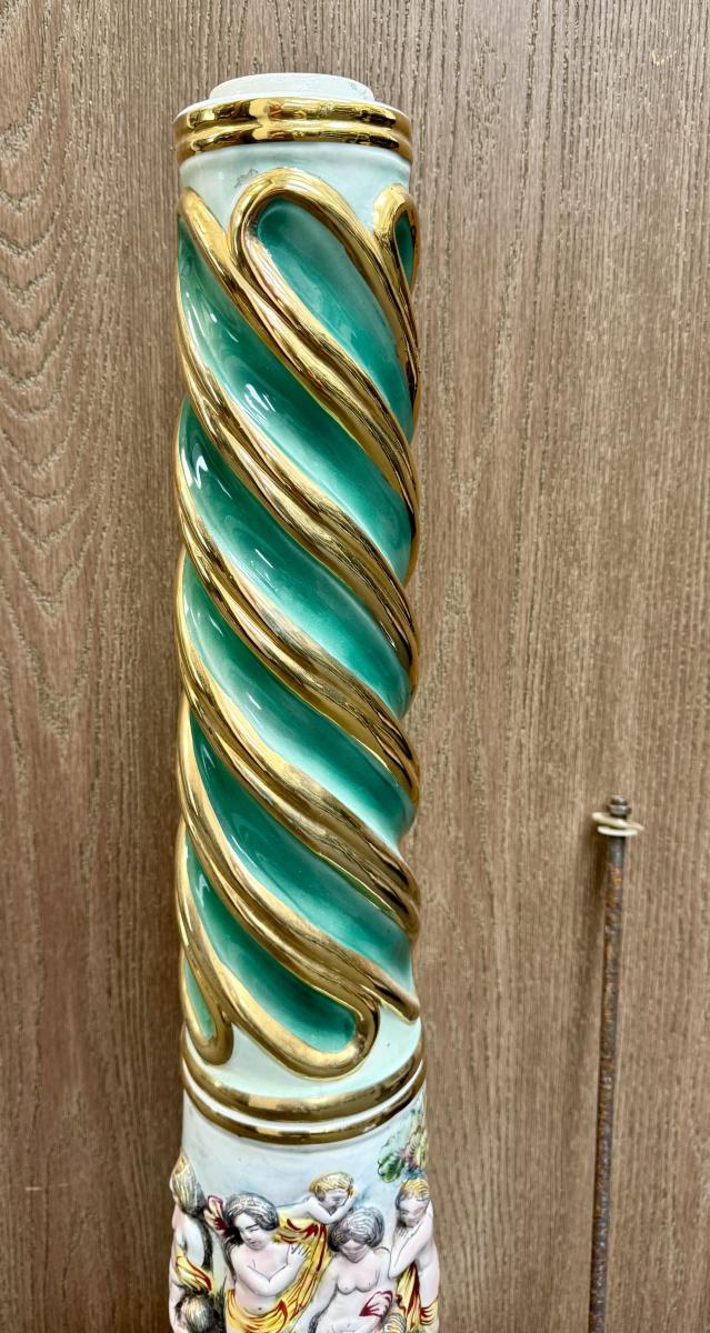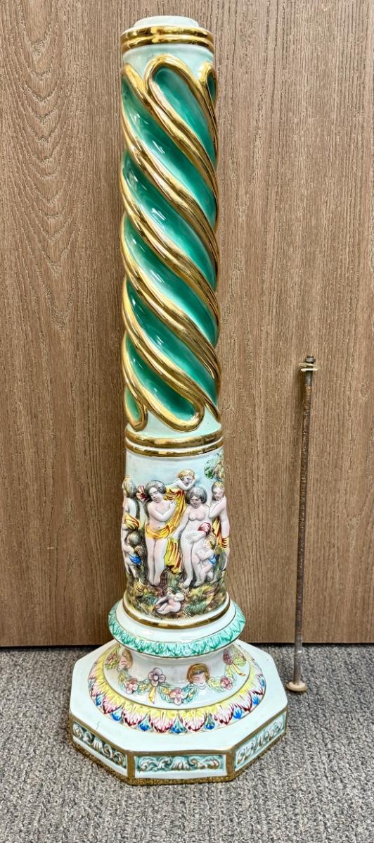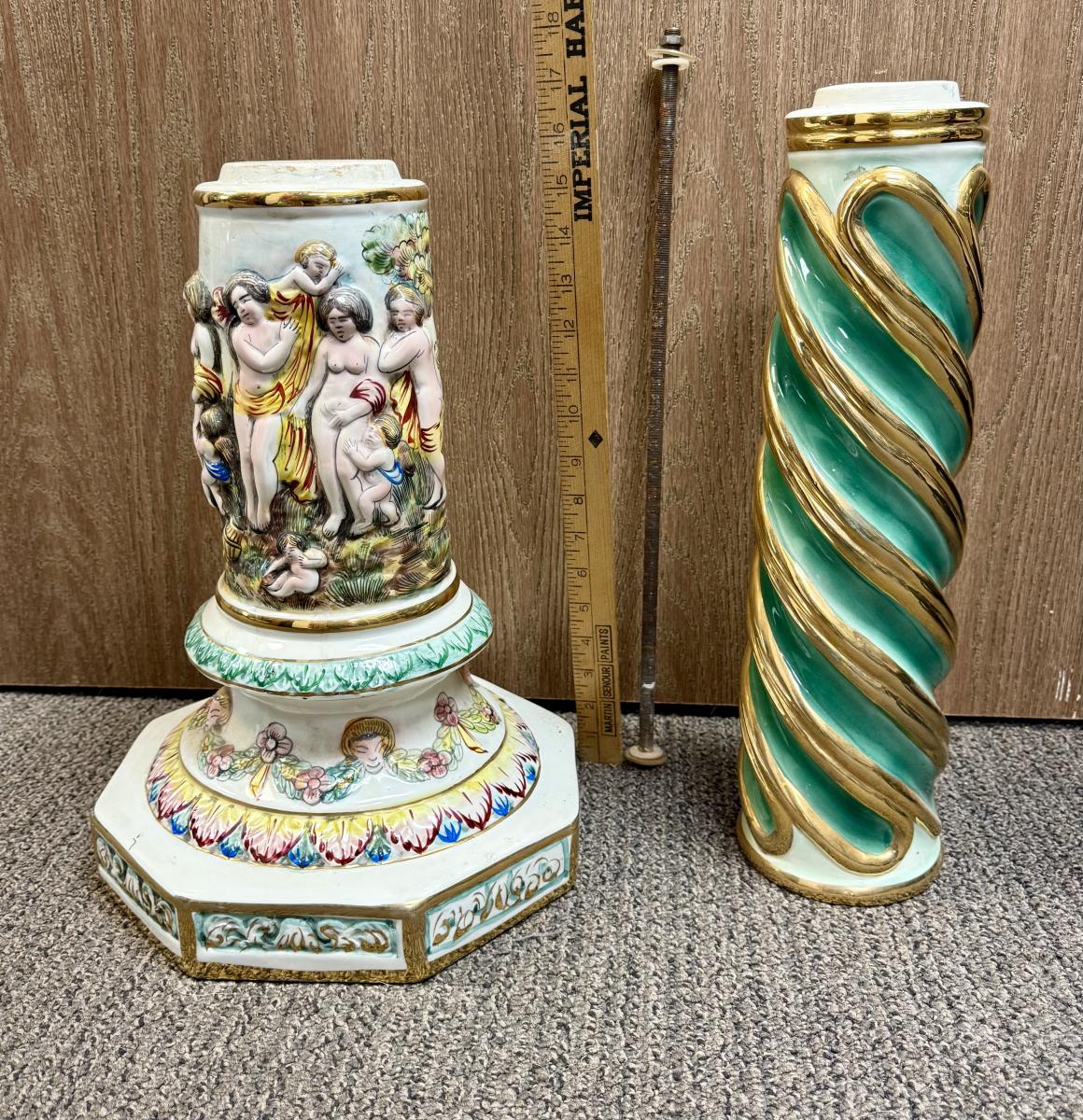 Vintage 1960'S Capodimonte Pedestal Home Decor W/ Green and Gold Accents