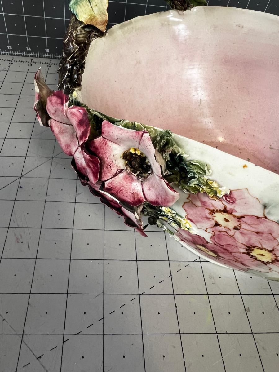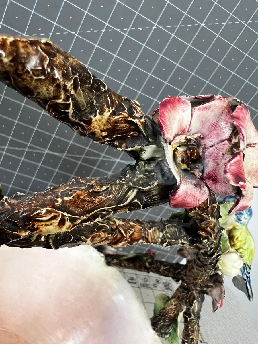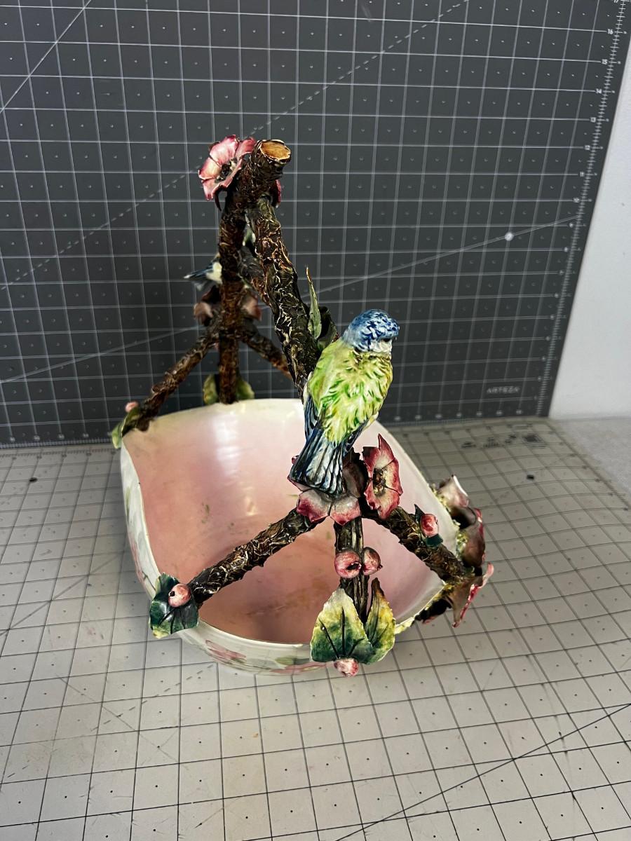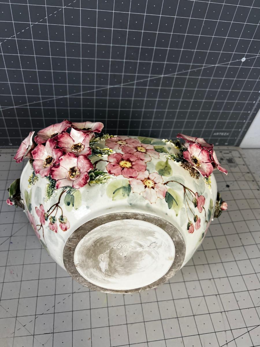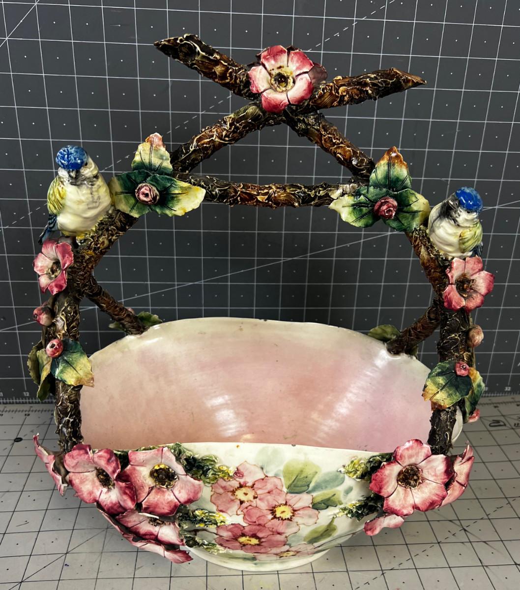 Capodimonte Italian Majolica Hand Painted Floral Bowl with Twigs and Birds