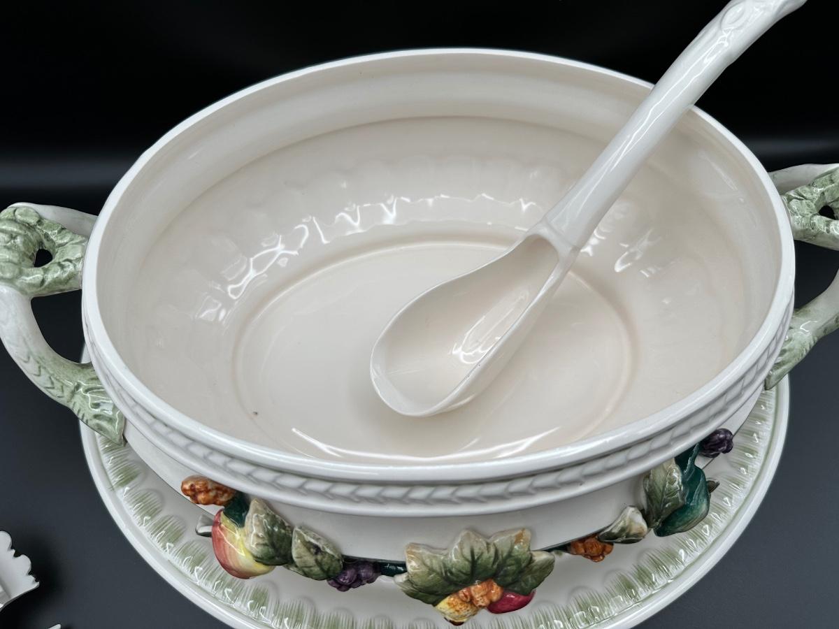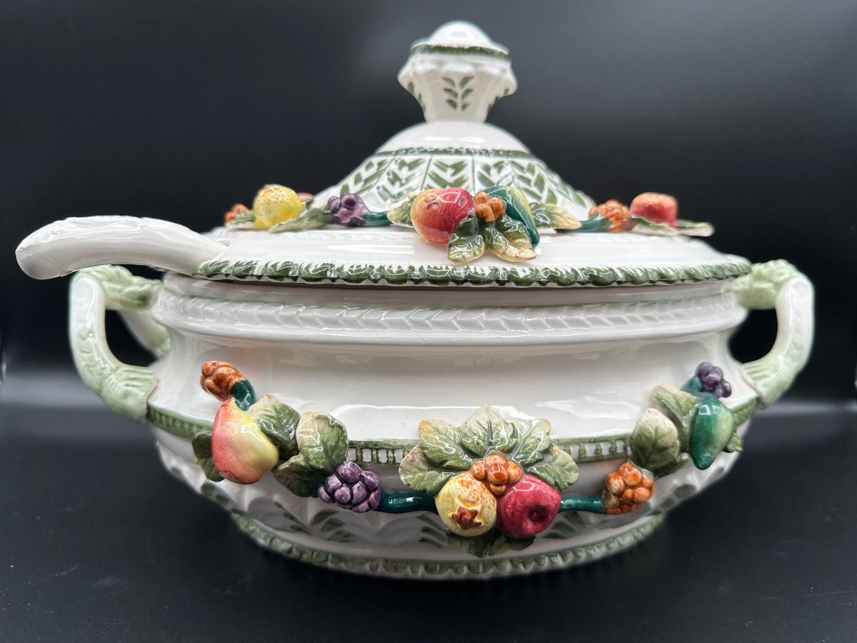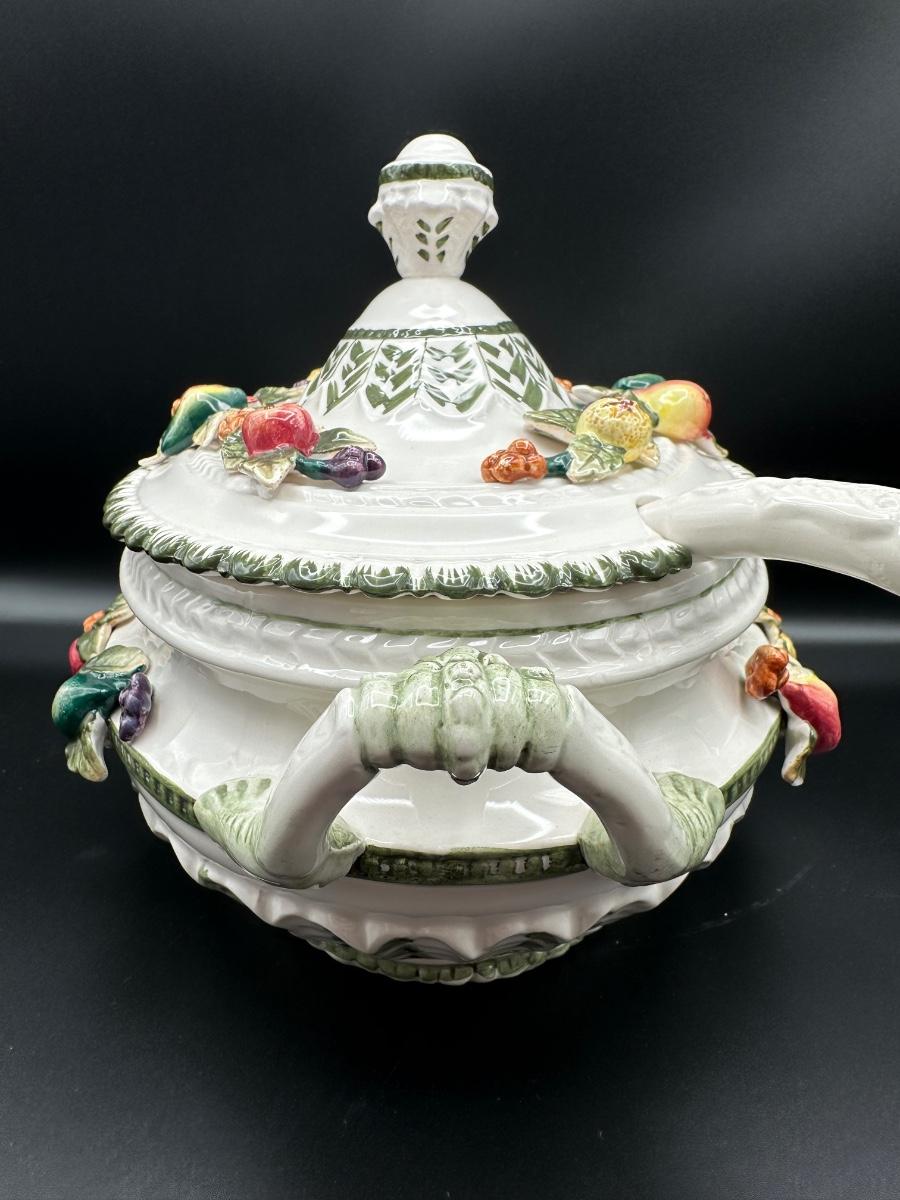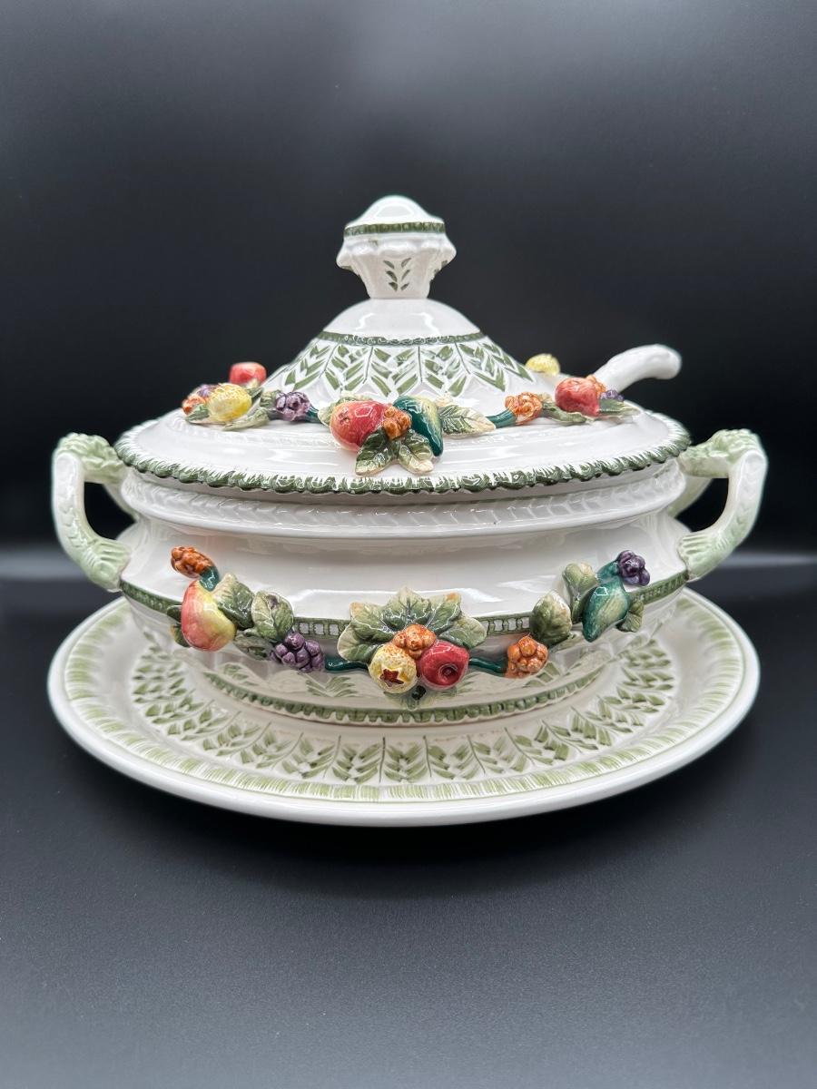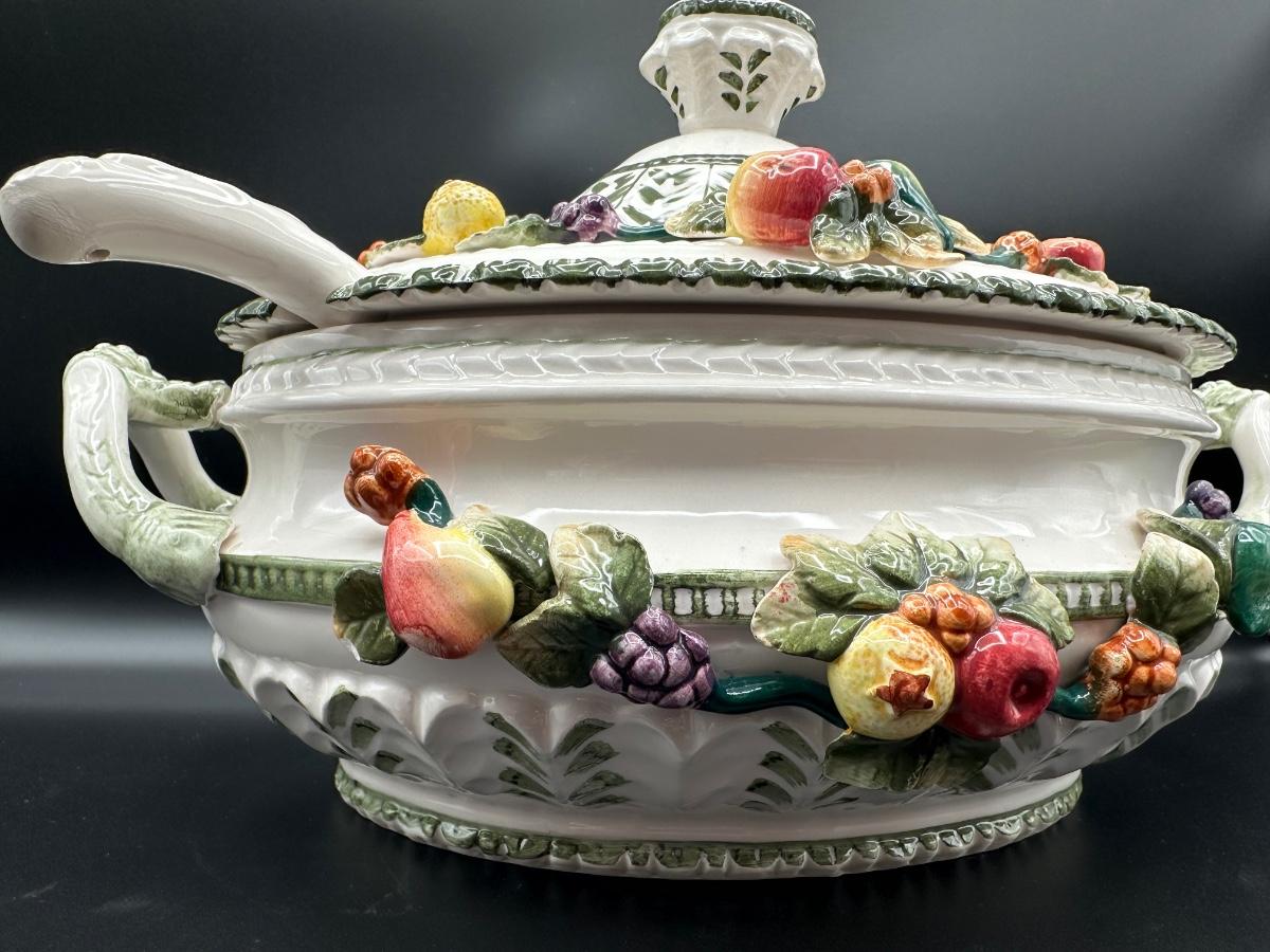 Capodimonte Italian Porcelain Fruit Tureen Ladle And Underplate