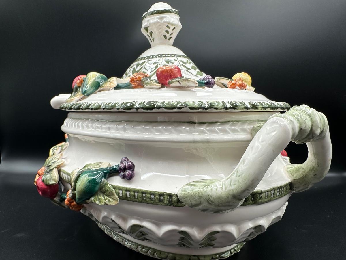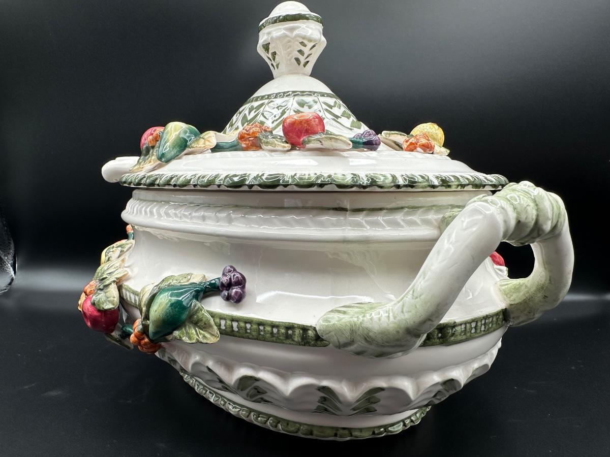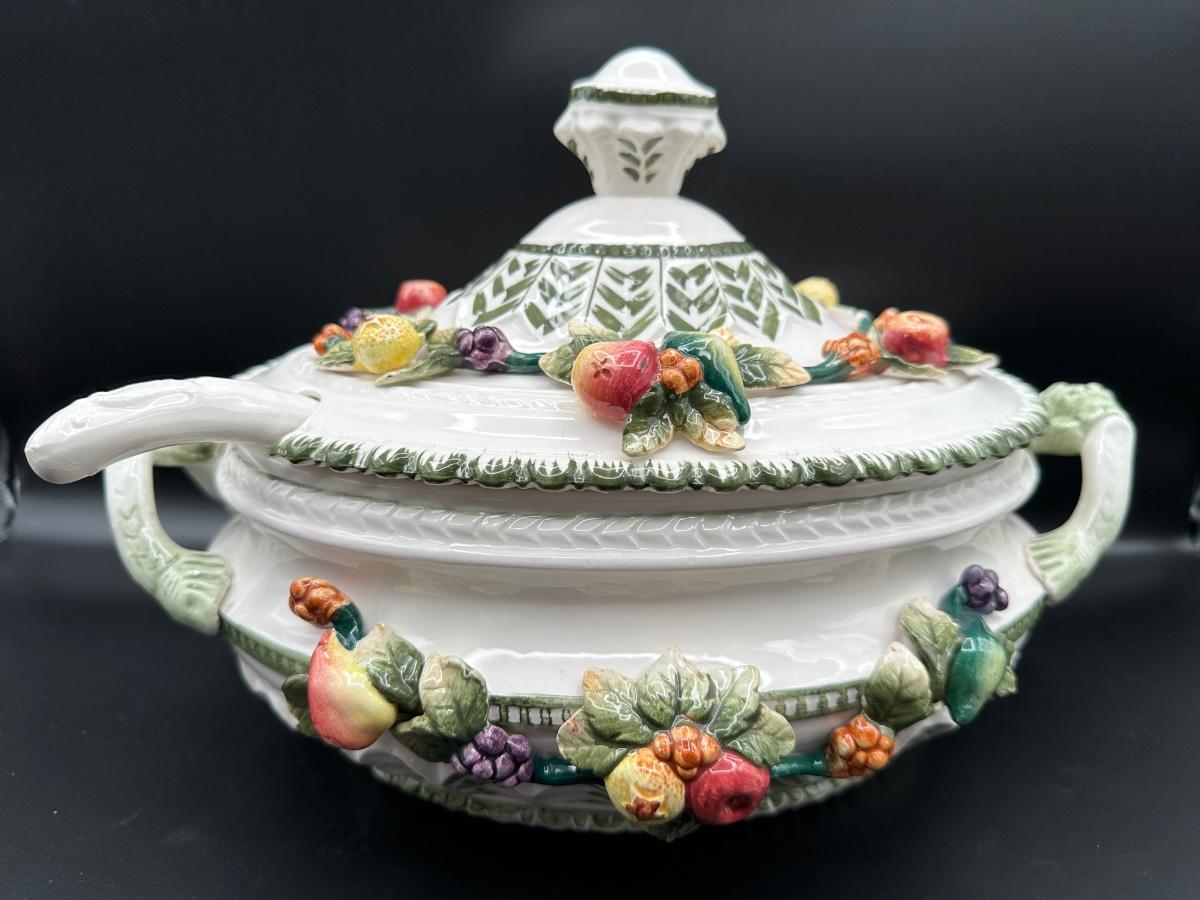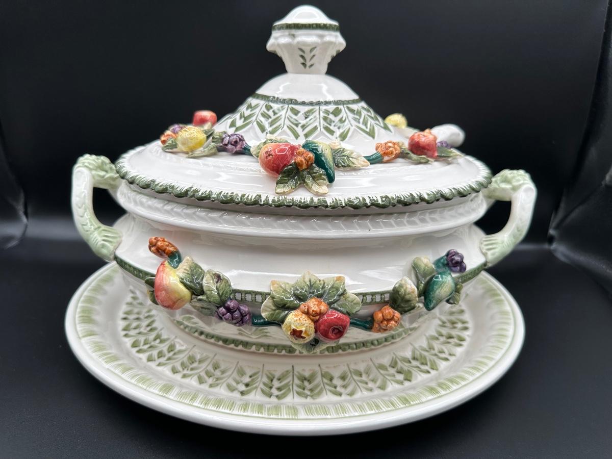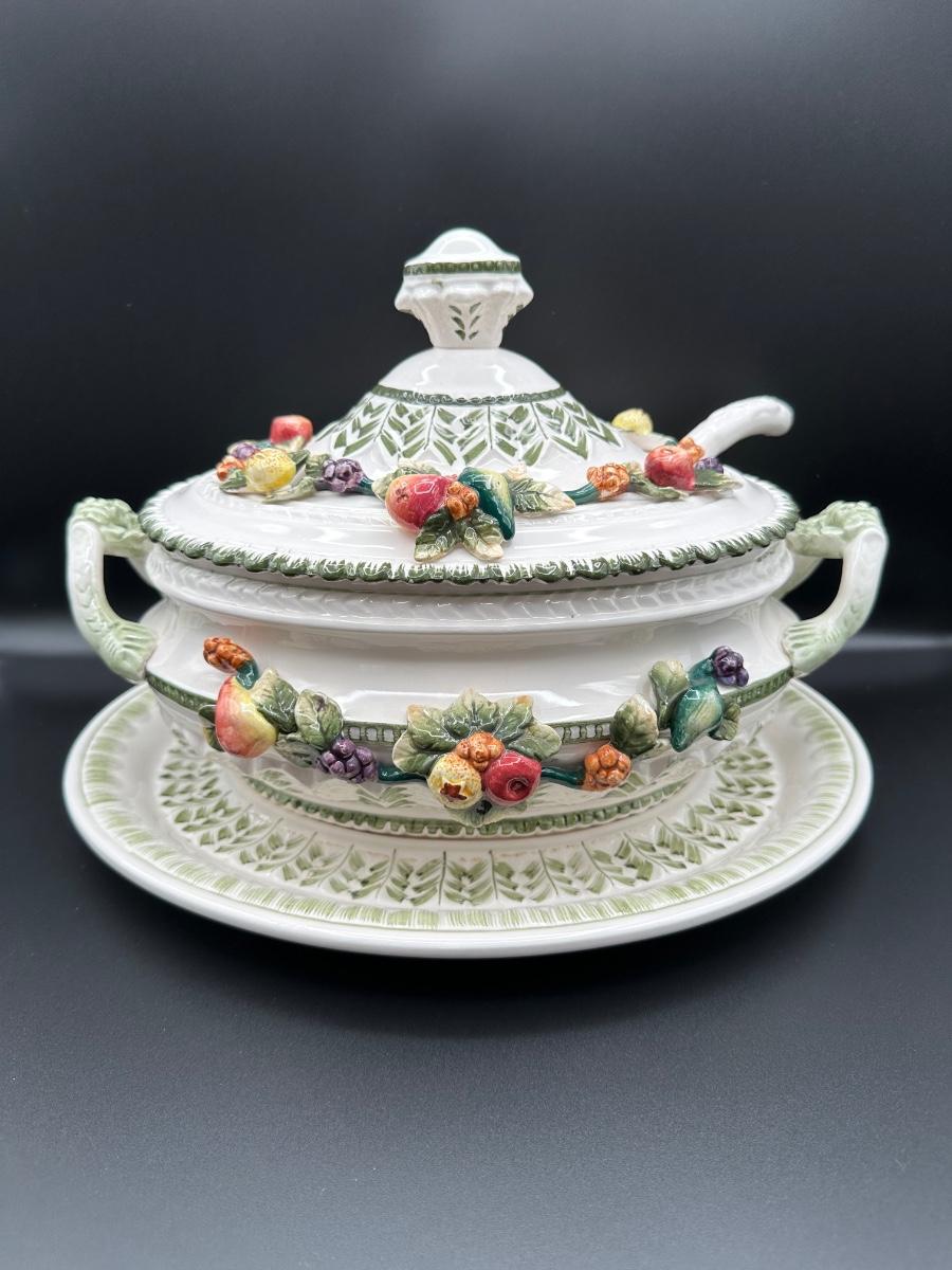 Capodimonte Italian Porcelain Fruit Tureen Ladle And Underplate