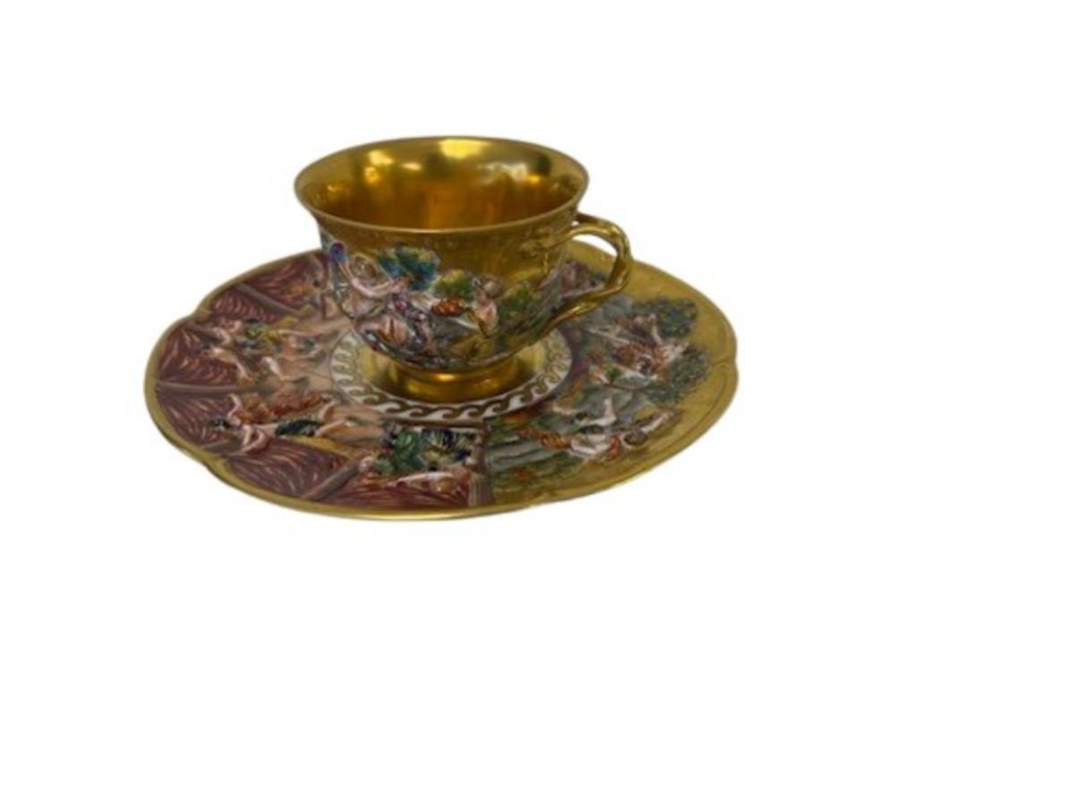 Believed to be manufactured in the second Capodimonte factory. The factory was established in Naples by King Charles VII's son Ferdinand. No obvious chips or cracks. [KA]
