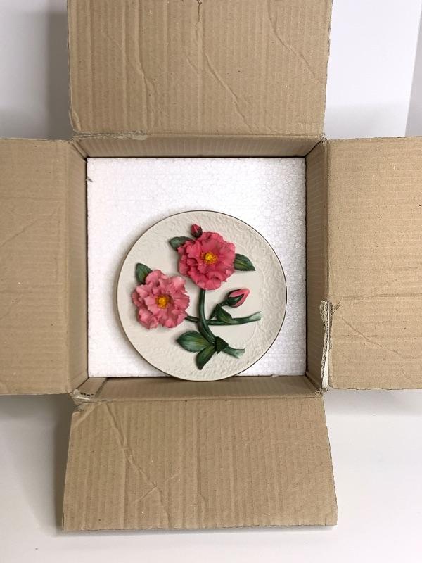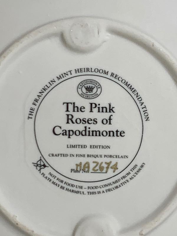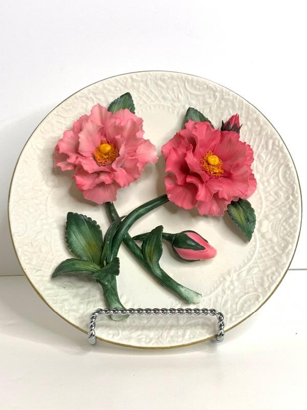 Capodimonte 3 D Pink Roses Plate - New In Box