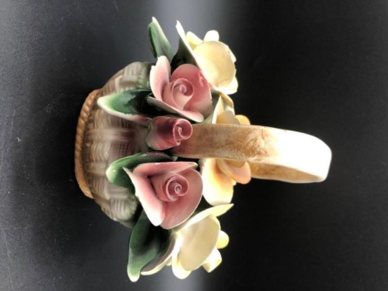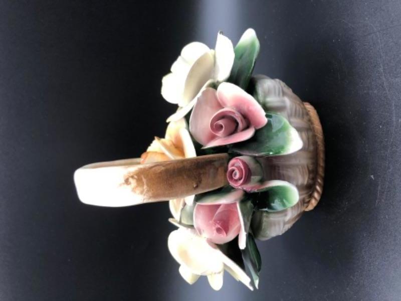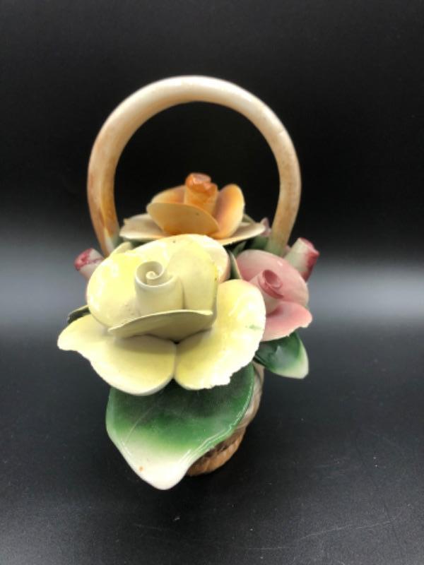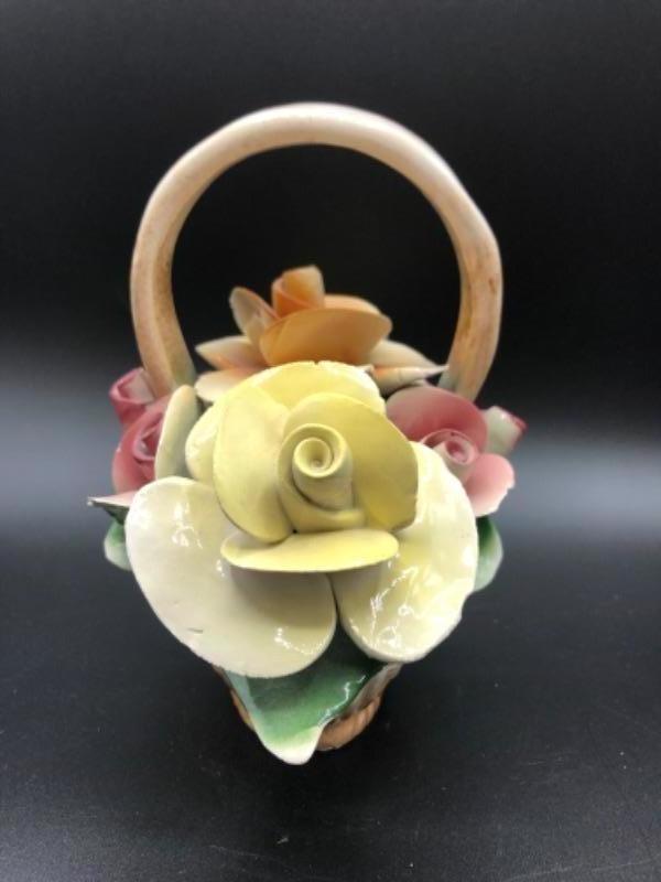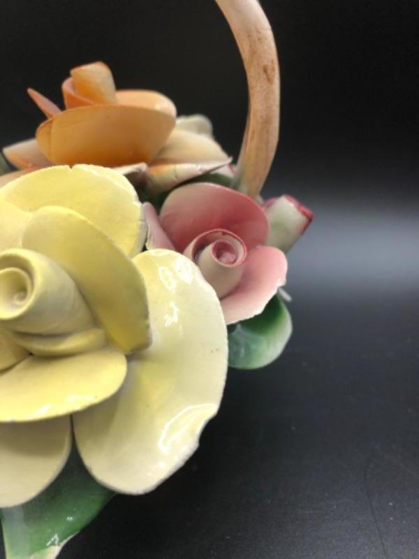 Capodimonte porcelain flowers in ceramic basket Italian pottery