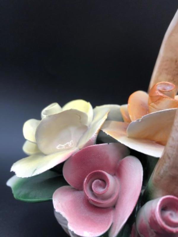 Capodimonte  porcelain flowers in ceramic basket Italian pottery