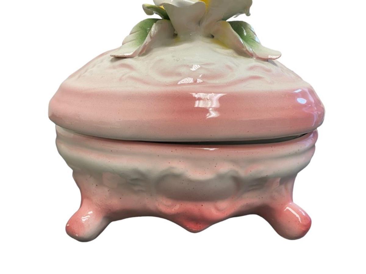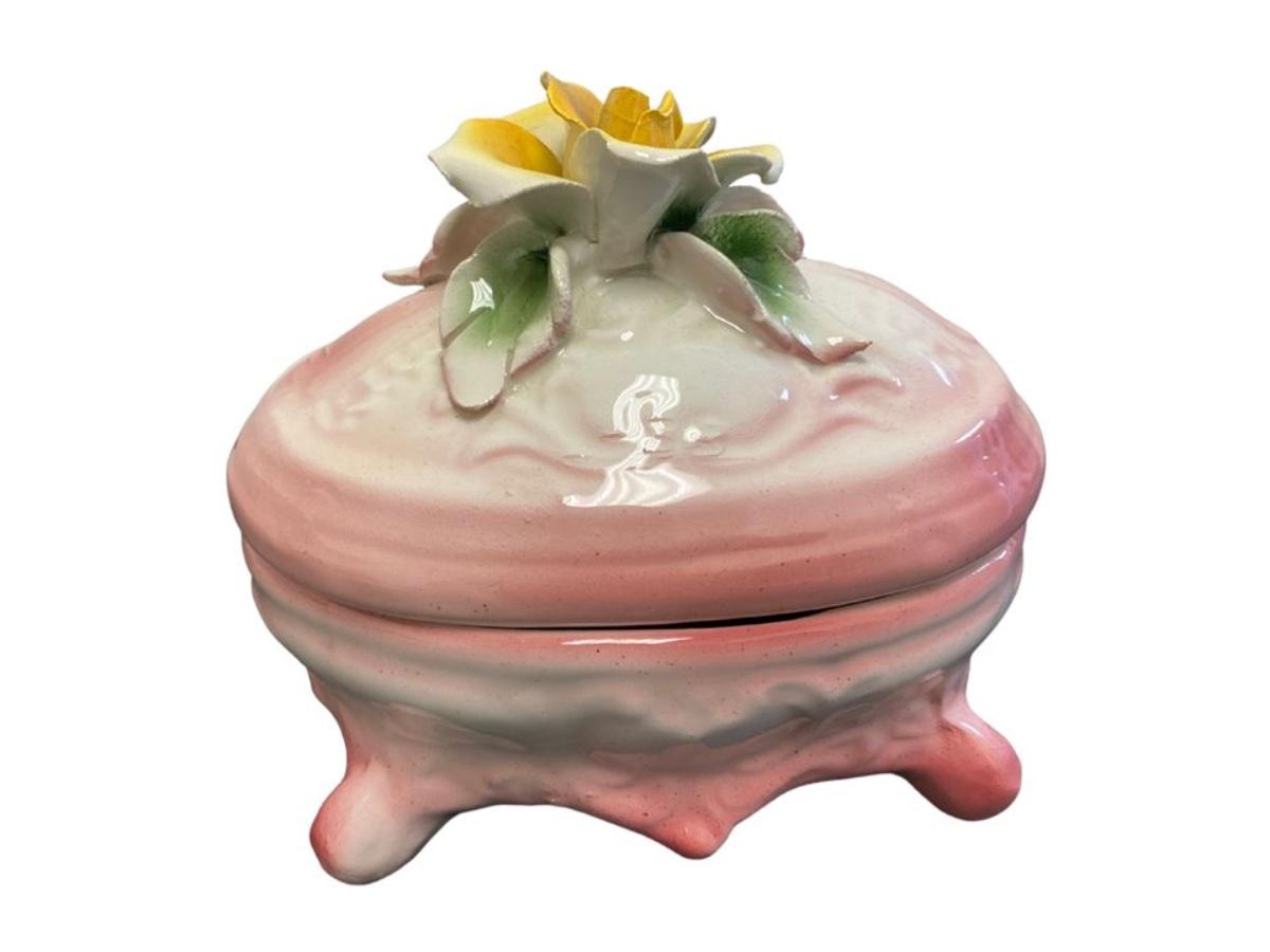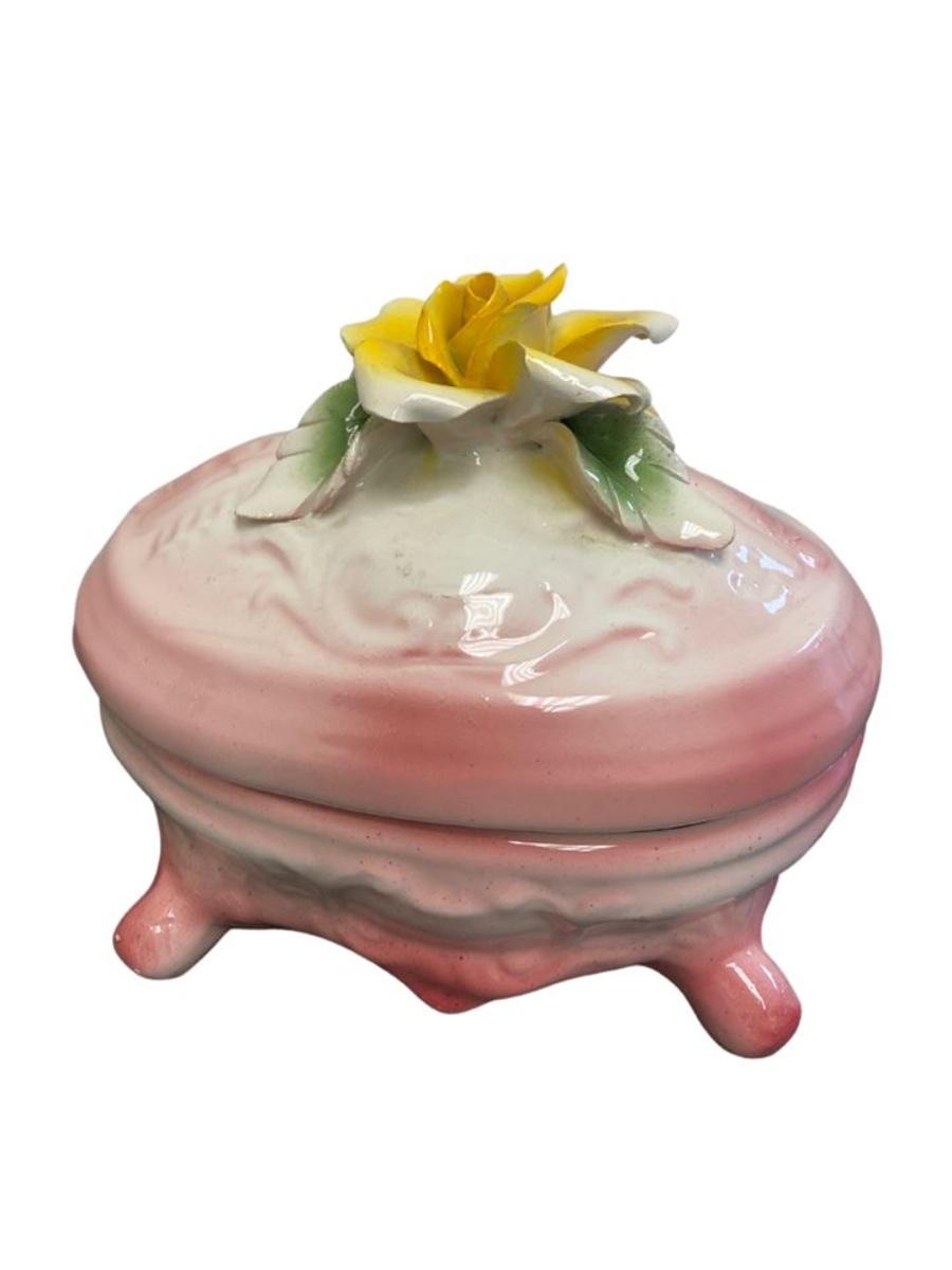 Measures approx. 5.5"W x 5"H(with lid) x3.5"D. No apparent cracks/breaks.