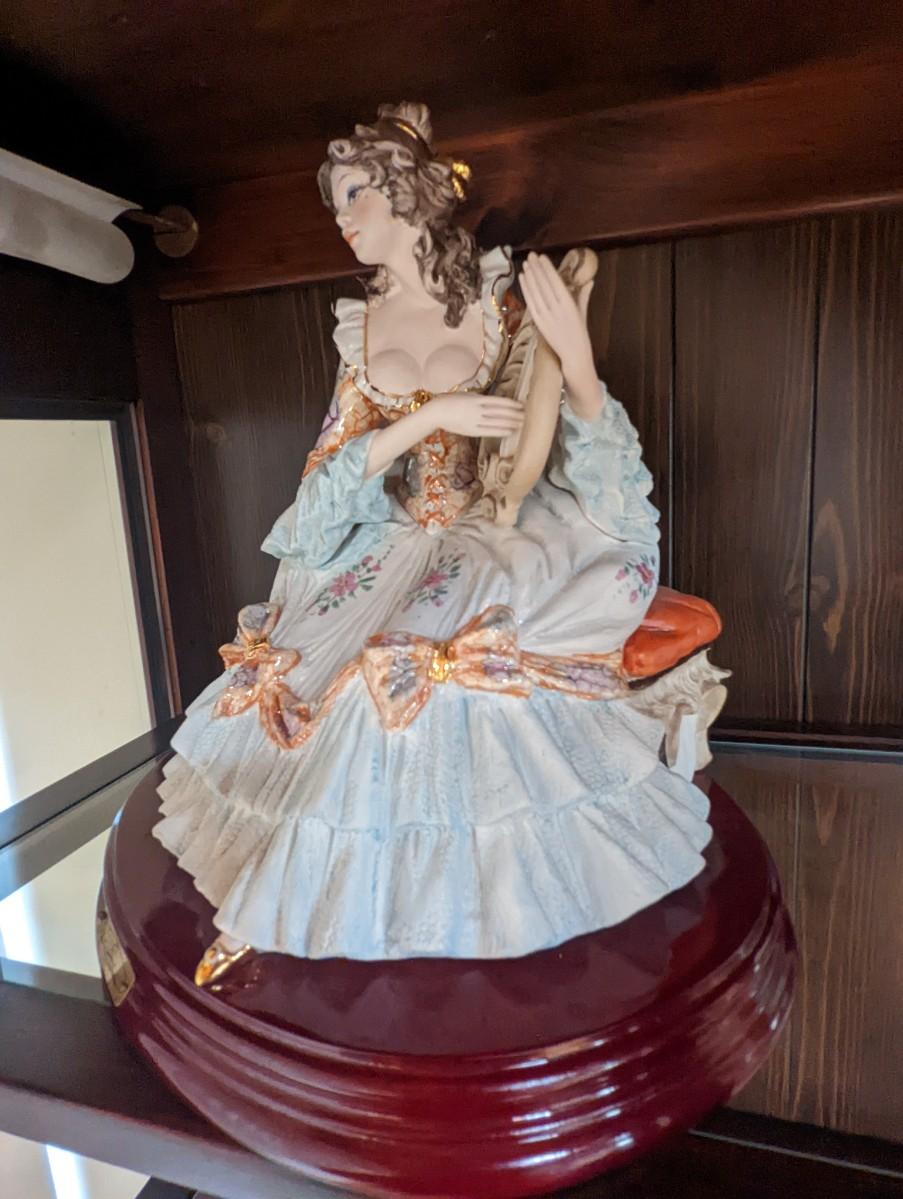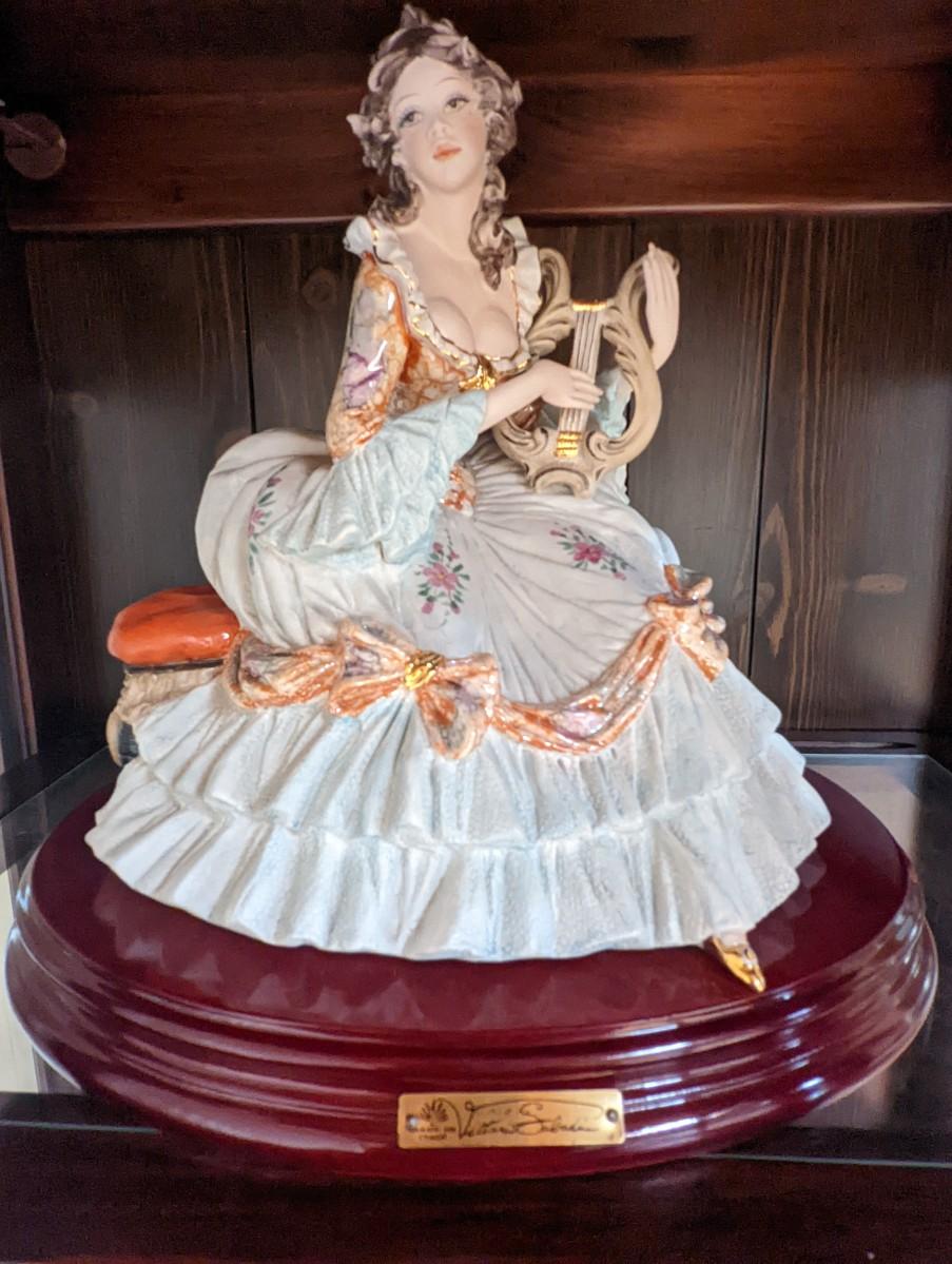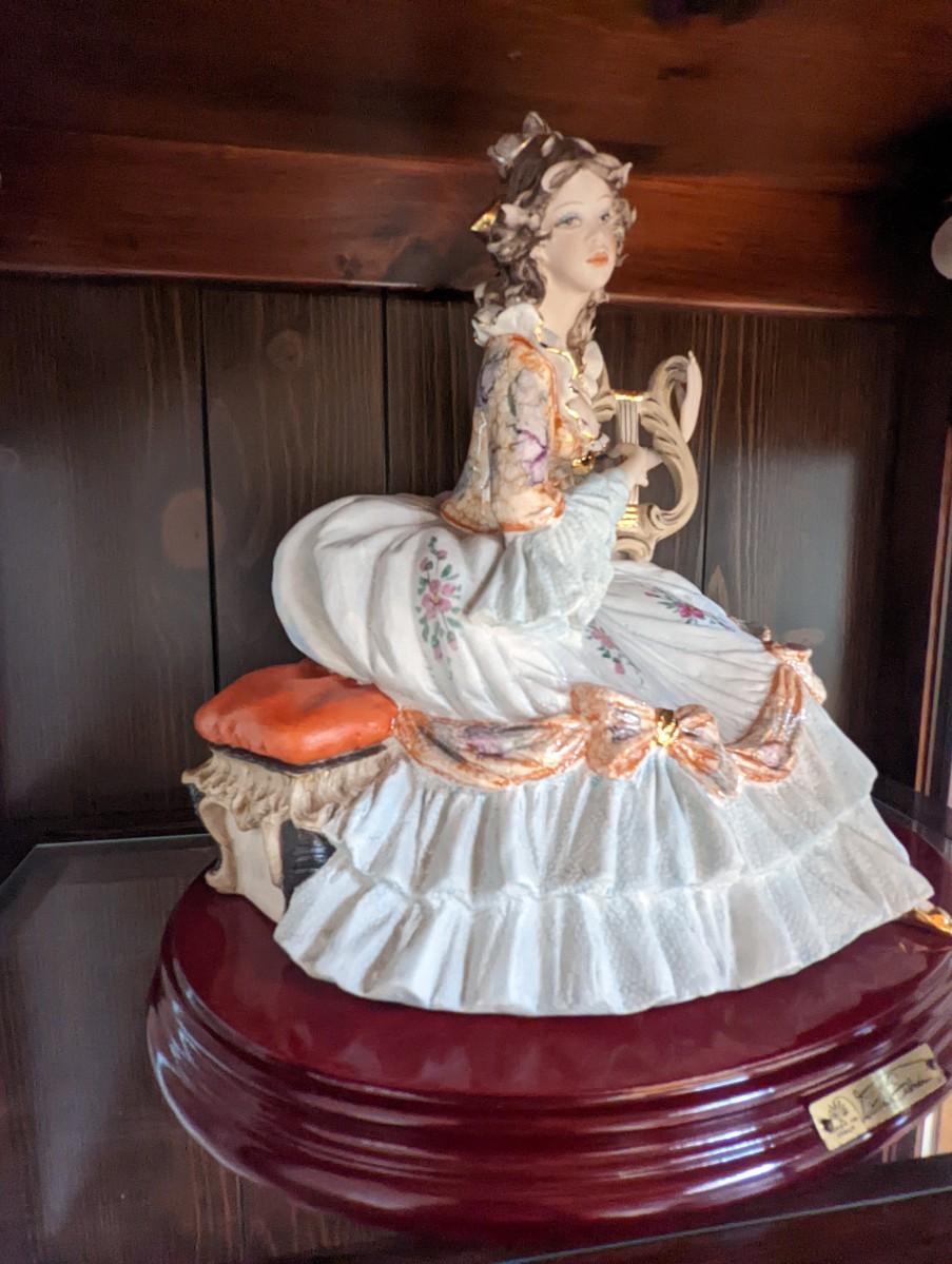 Capodimonte Sabadin Vittorio Porcelain Figurine- Seated Lady with Harp. Excellent condition.