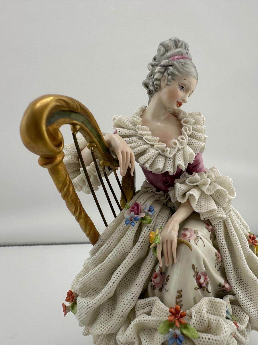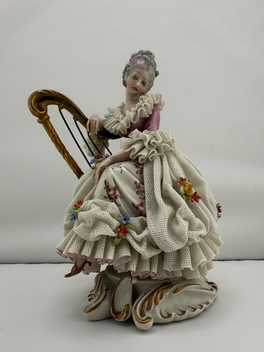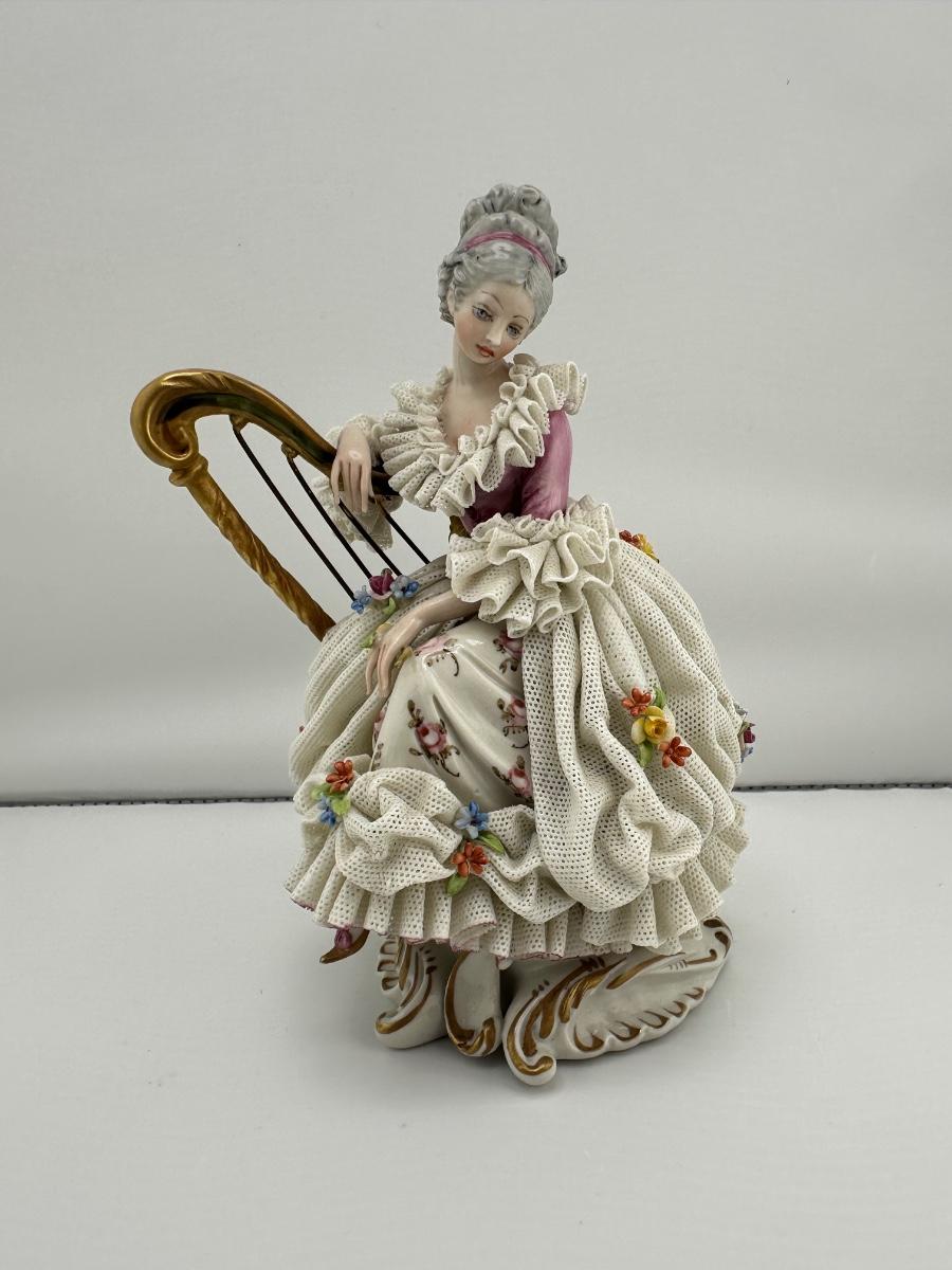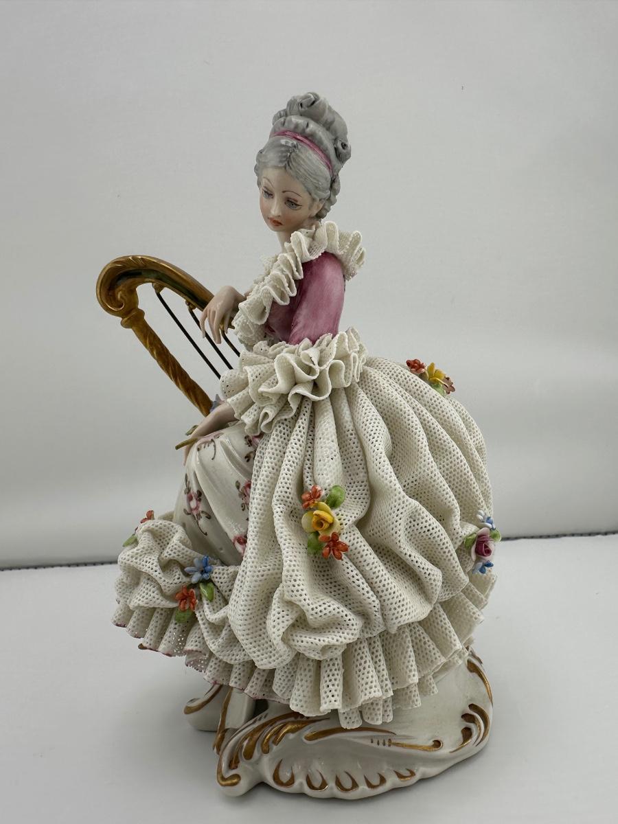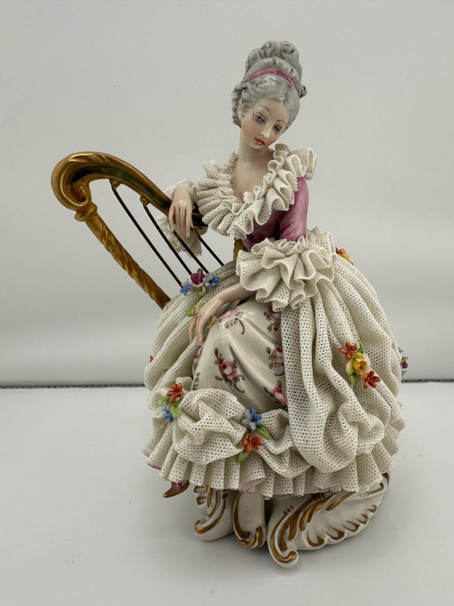 Capodimonte Signed Cappé Woman Playing Harp Figurine