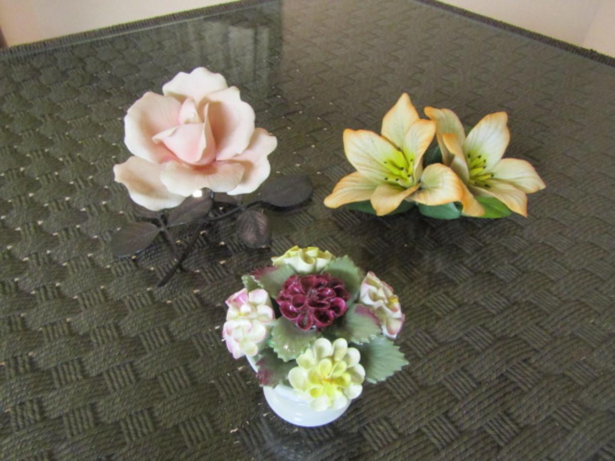 Capodimonte Style Flowers. The Aynsley piece has a chipped leaf- please see pictures.