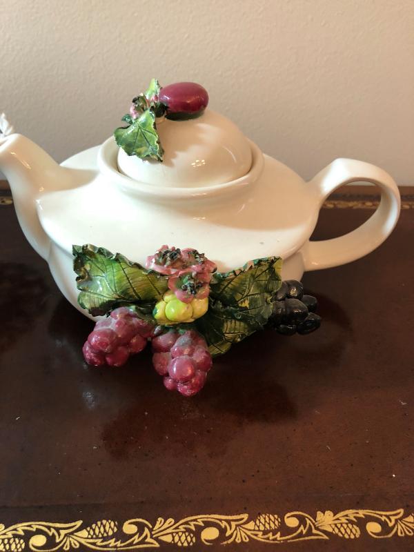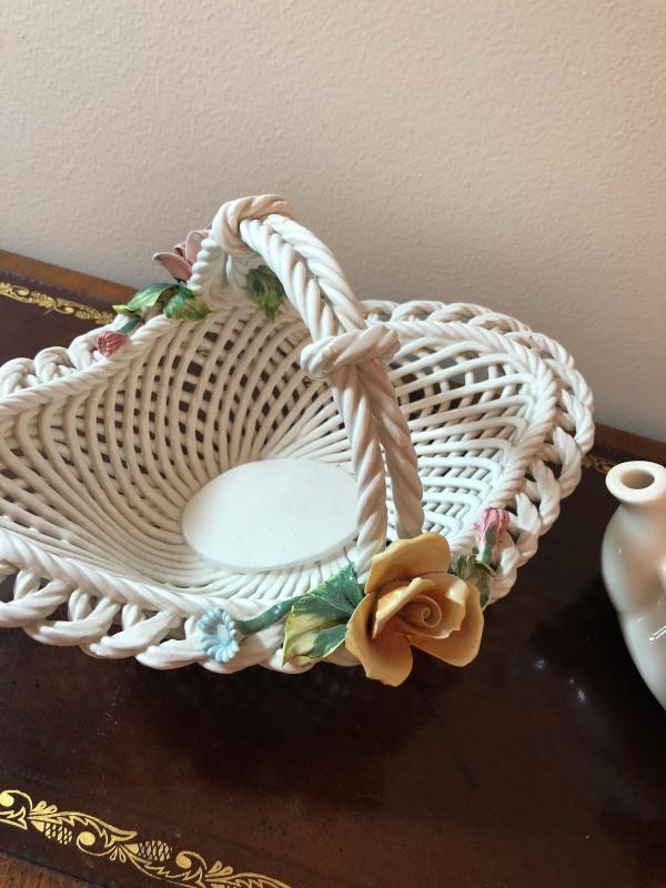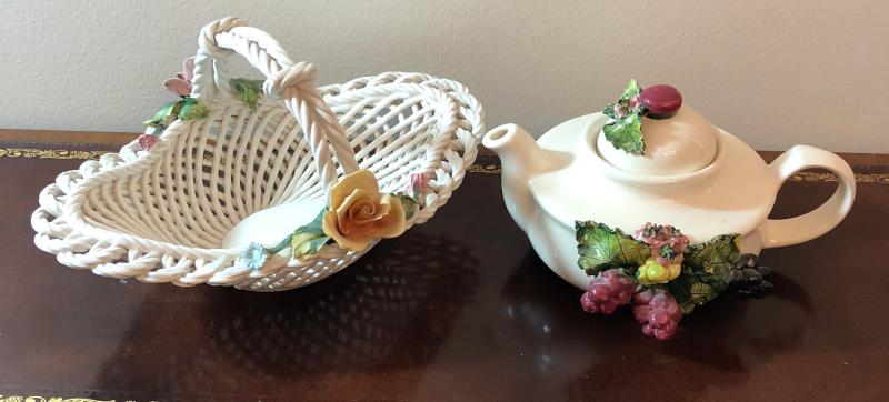Capodimonte Style Tea Pot and Basket, Ceramic