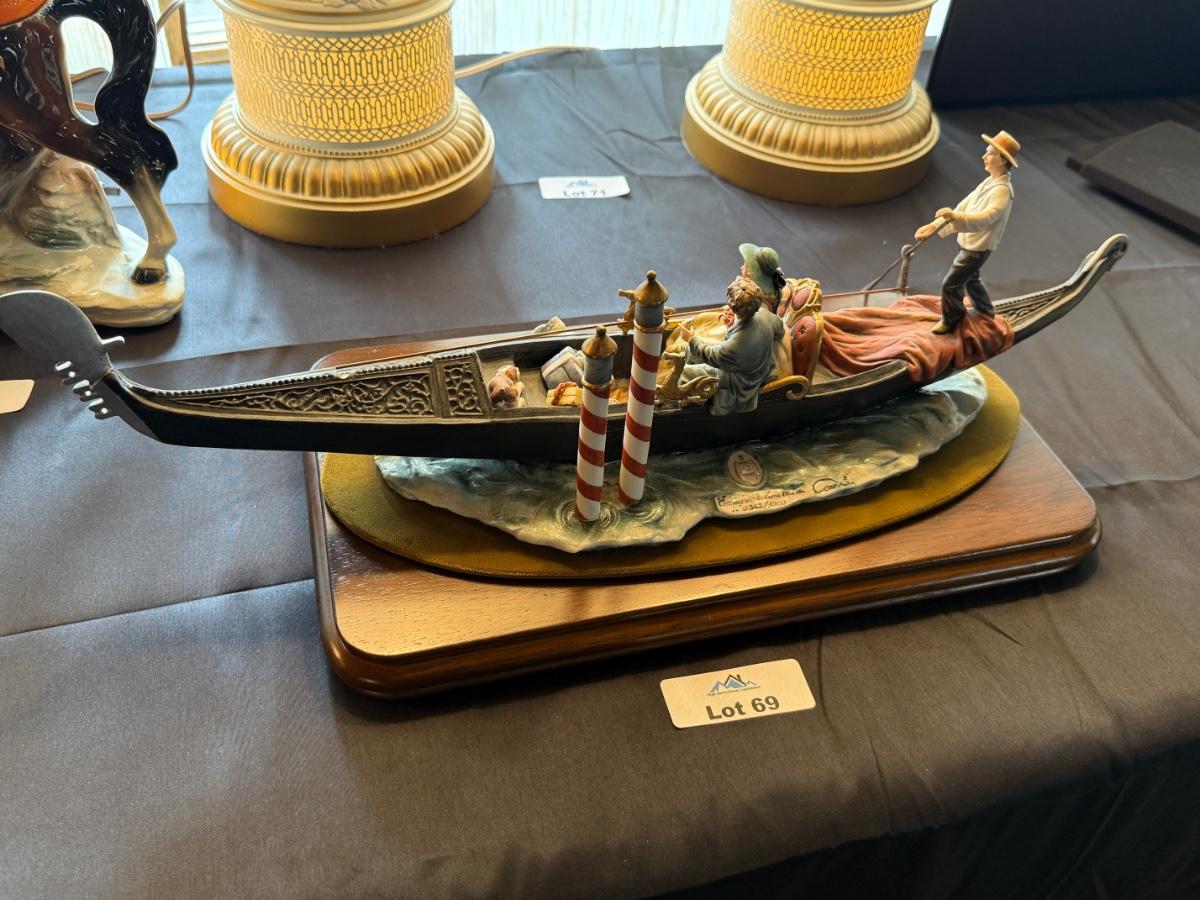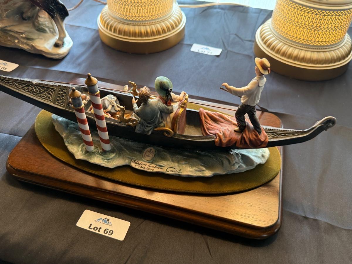 Large Capodimonte Venice Gondola Boat Scene on base #342 of 1000