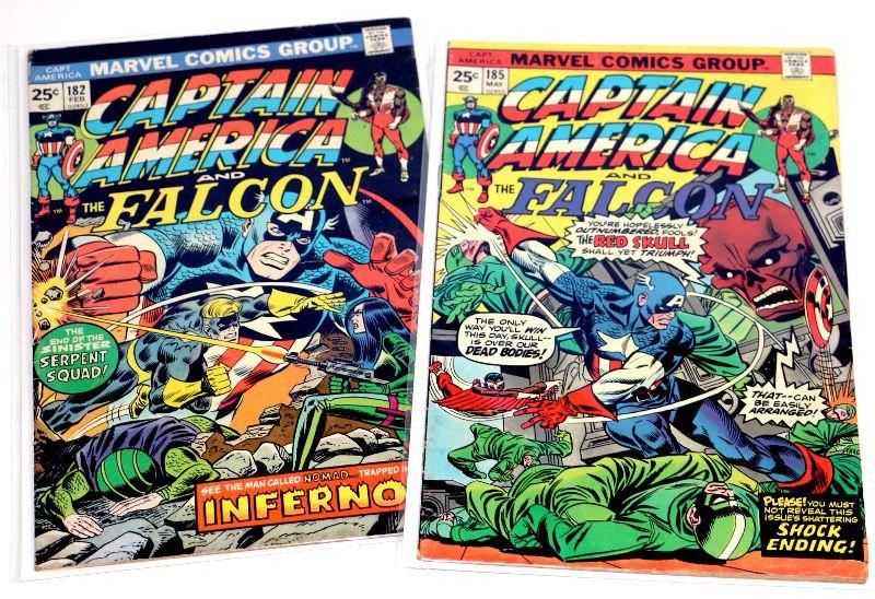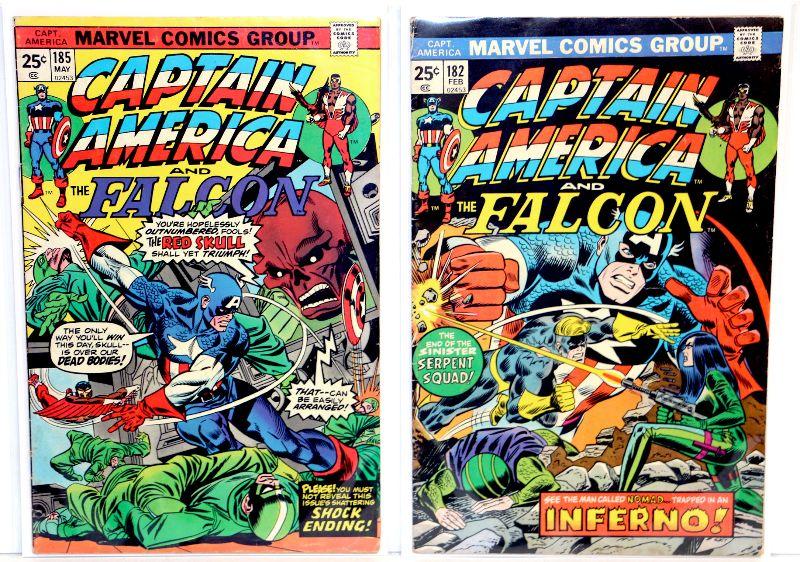 CAPTAIN AMERICA #182 #185 Comic Book Set Falcon Issues 1975 Marvel Comics