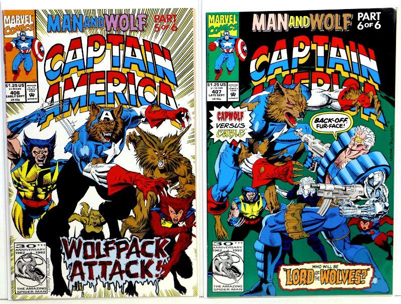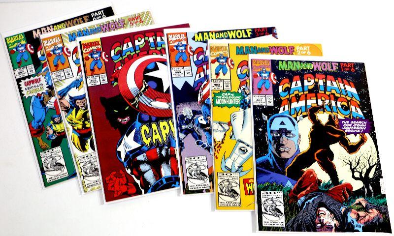 6 Comic books set - Complete Mini Series Story "Man and Wolf" Parts 1 through 6, Cpatin America #402, 403, 404, 405, 406 and 407 - all books in high grade VF/NM - Collector's Set!