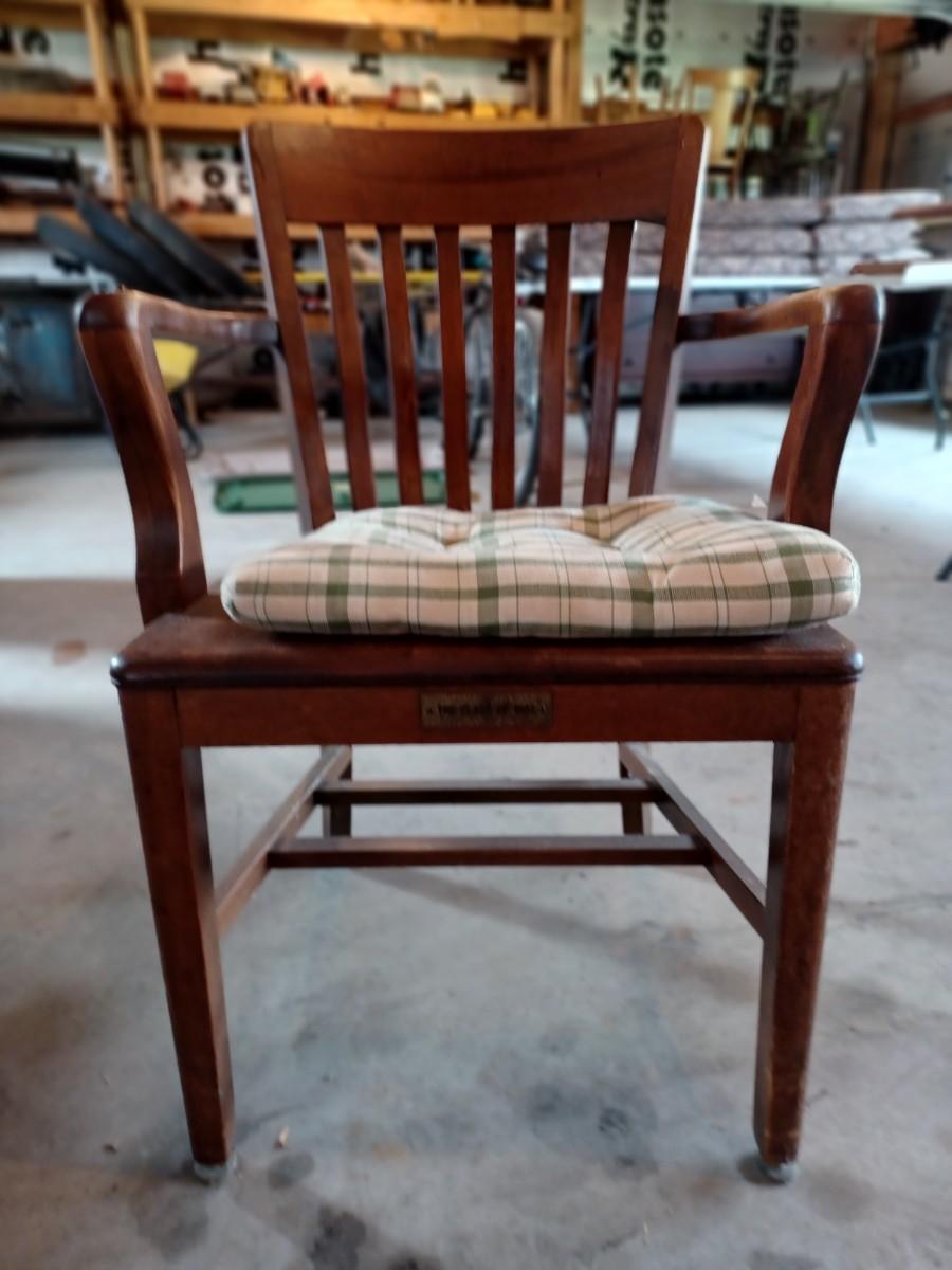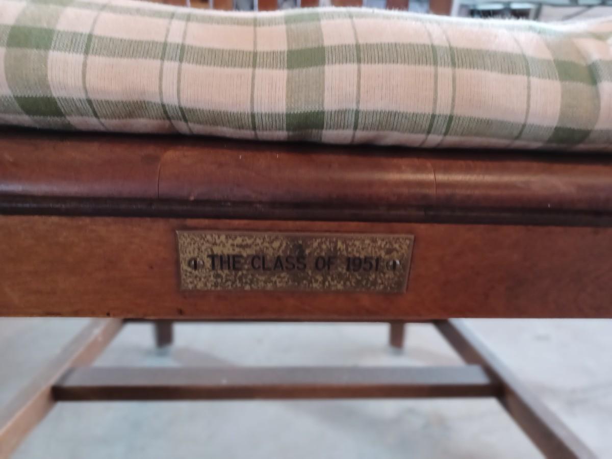 Vtg Captain Chair with Green Plaid cushion- Plaque reads Class of 1951