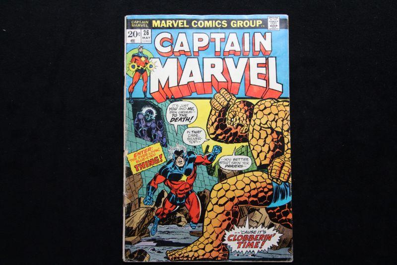 \n'Betrayal!' ““ (20-page story) ““ Captain Marvel enters Lou-Ann's apartment to ask her why she betrayed he and Rick Jones in the previous issue. Lou-Ann then tells him a story about Titan, Thanos and his army of alien warriors. She also tells about the mind controller device that Thanos installed in some of the most important men on Earth to conquer it, as well as Lou-Ann, before attacking Marvel with a ray-gun. Meanwhile at some place of the Universe, the Super-Skrull and Skragg are watching everything and controlling Lou-Ann movements and words. It is then revealed that Thanos is the master behind the Skrulls. He sends the Super-Skrull disguised as Human Torch to attack the Thing. He sends Thing to the same address where Lou-Ann send Rick Jones. At the place, Thing and Captain Marvel fight each other, both thinking that the other is actually the Super-Skrull. Skragg blocks Thing's ability to talk, so he can't explain himself to Marvel. The two heroes keep fighting until Marvel is about to kill the Thing, when he recovers his voice and explains the situation. After Skragg's plan fails, he is executed.