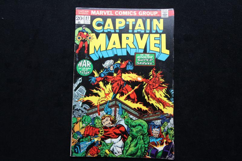 \nThanos flies towards the Derniere Islands with Death and finds the Cosmic Cube, but Drax is already there to stop him. Meanwhile, Rick's romantic interest Lou-Ann goes to the Avengers' Mansion, asking for help with Rick Jones's membership card. Captain Marvel, Eros and Mentor battle Thanos' army of aliens controlling Titan and Captain Marvel fights against the Super-Skrull, killing him.: Condition: 4.5