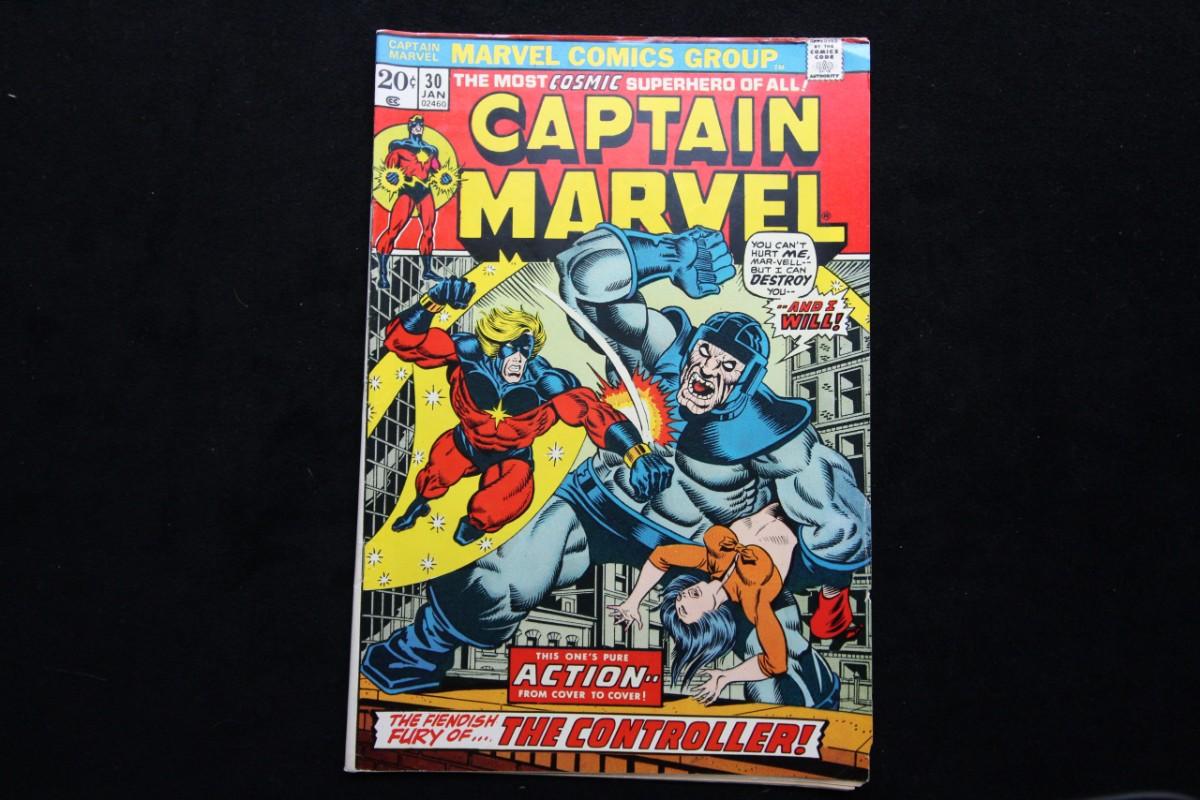 ...To Be Free from Control!' – (19-page story) – With his new Cosmic Awareness, Captain Marvel tracks down the Controller, seeking to defeat him and release Rick Jones' girlfriend from the Controller's power! Even with his new power, Captain Marvel still struggles against the Controller, until Thanos intervenes and destroys the Controller. Now, Captain Marvel must seek out other heroes that he can rally against Thanos. His first stop... Avengers mansion! : Condition: 6.5