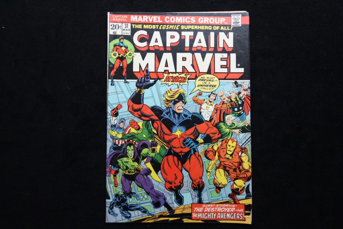 'The Beginning of the End!' – (20-page story) – In response to the threat of Thanos, Captain Marvel has returned to Avengers Mansion. He asks the entire team to assemble. He has also summoned Moondragon to assist. Drax the Destroyer has also come to the mansion to find Captain Marvel. After Drax briefly skirmishes with a contingent of Avengers, the team meets to review Thanos' plans and recent events.