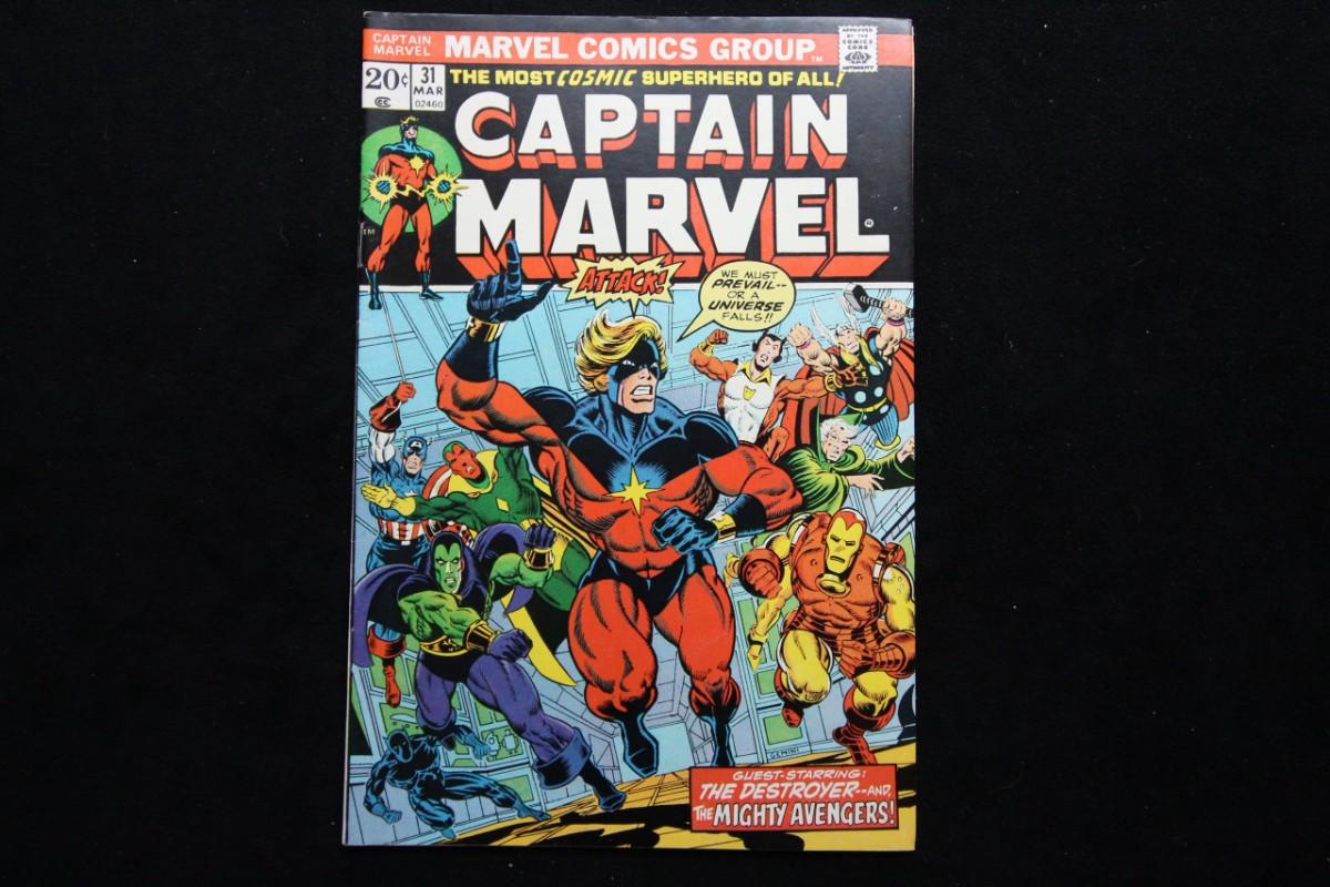 The Beginning of the End!' – (20-page story) – In response to the threat of Thanos, Captain Marvel has returned to Avengers Mansion. He asks the entire team to assemble. He has also summoned Moondragon to assist. Drax the Destroyer has also come to the ma