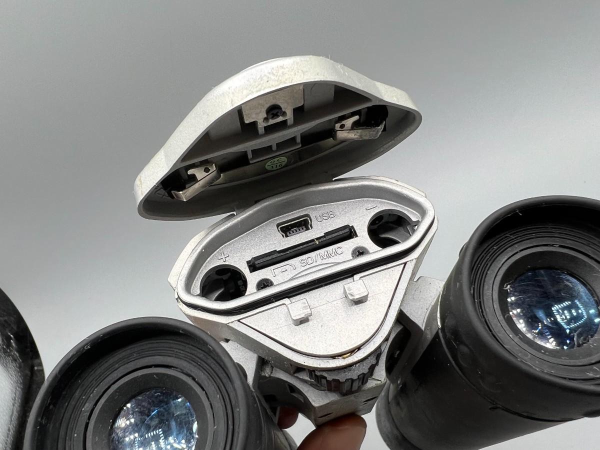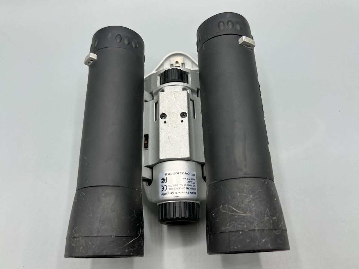 Capture View Meade Instruments Corporation Digital Camera Binoculars, there is wear to the binoculars and the batteries that were inside had been corroded. Has not been tested with new batteries, check pictures for more details and for sizing.
