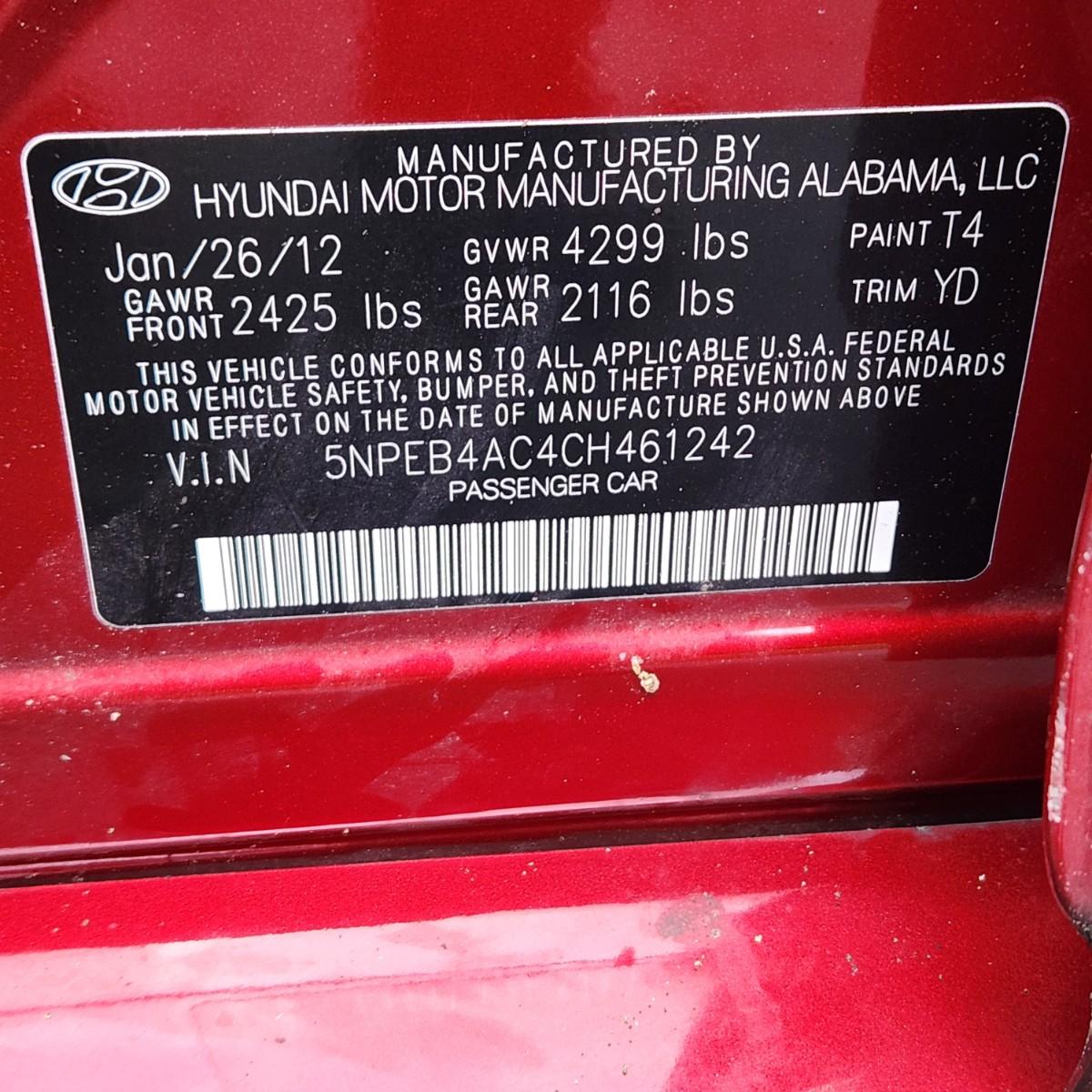 2012 Hyundai Sonata GLS 4 Door Car Sedan 57,002 Miles
