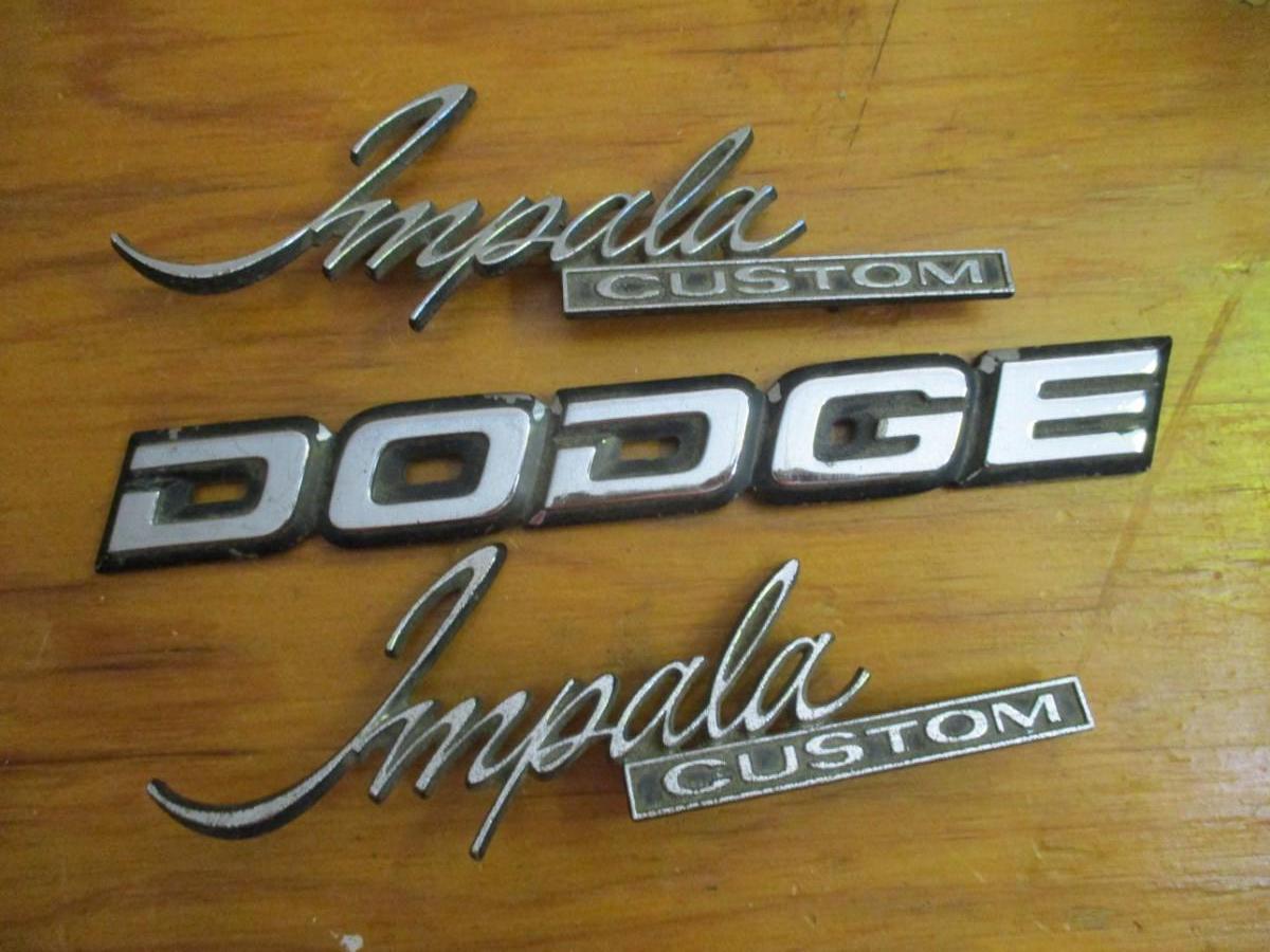 Set of Three Vintage Vehicle Emblems Impala Custom and Dodge- C