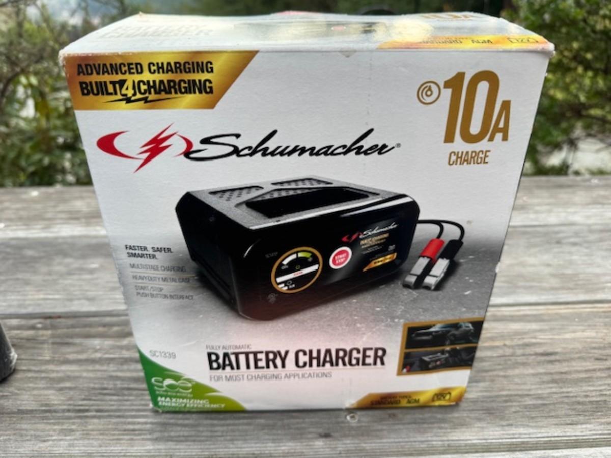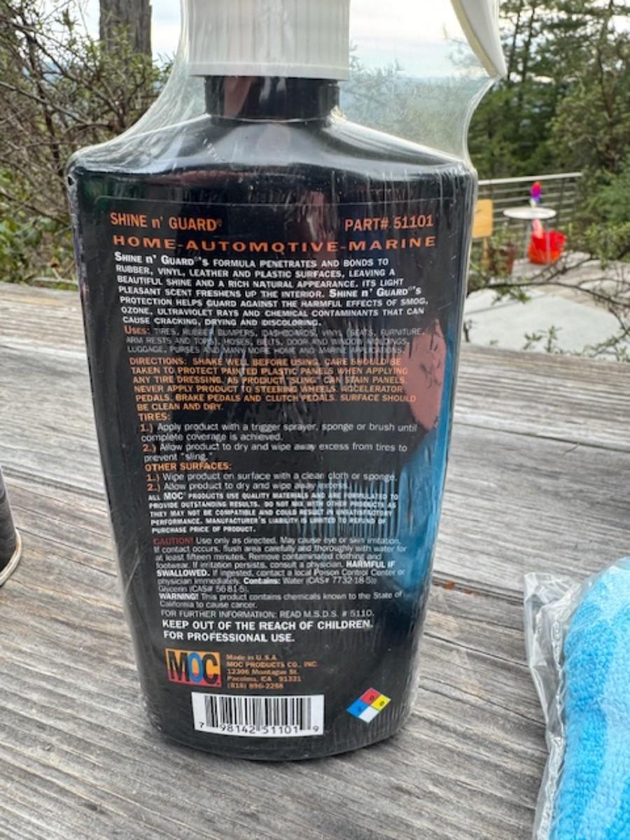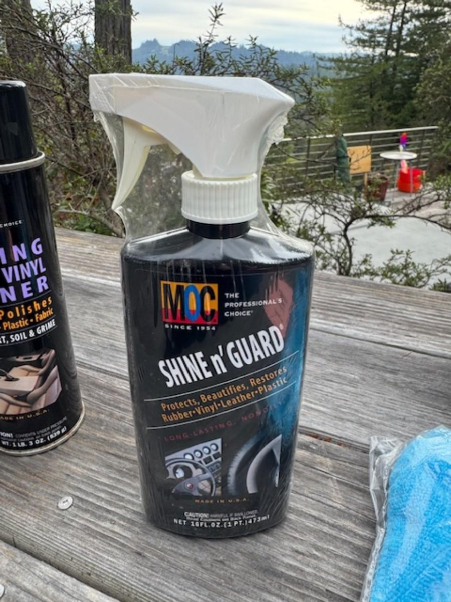 Schumacher car charger 10A charge, towels, MOC foaming fabric and vinyl cleaner, and a new MOC Shine and Guard protects rubber, vinyl, plastic and leather.