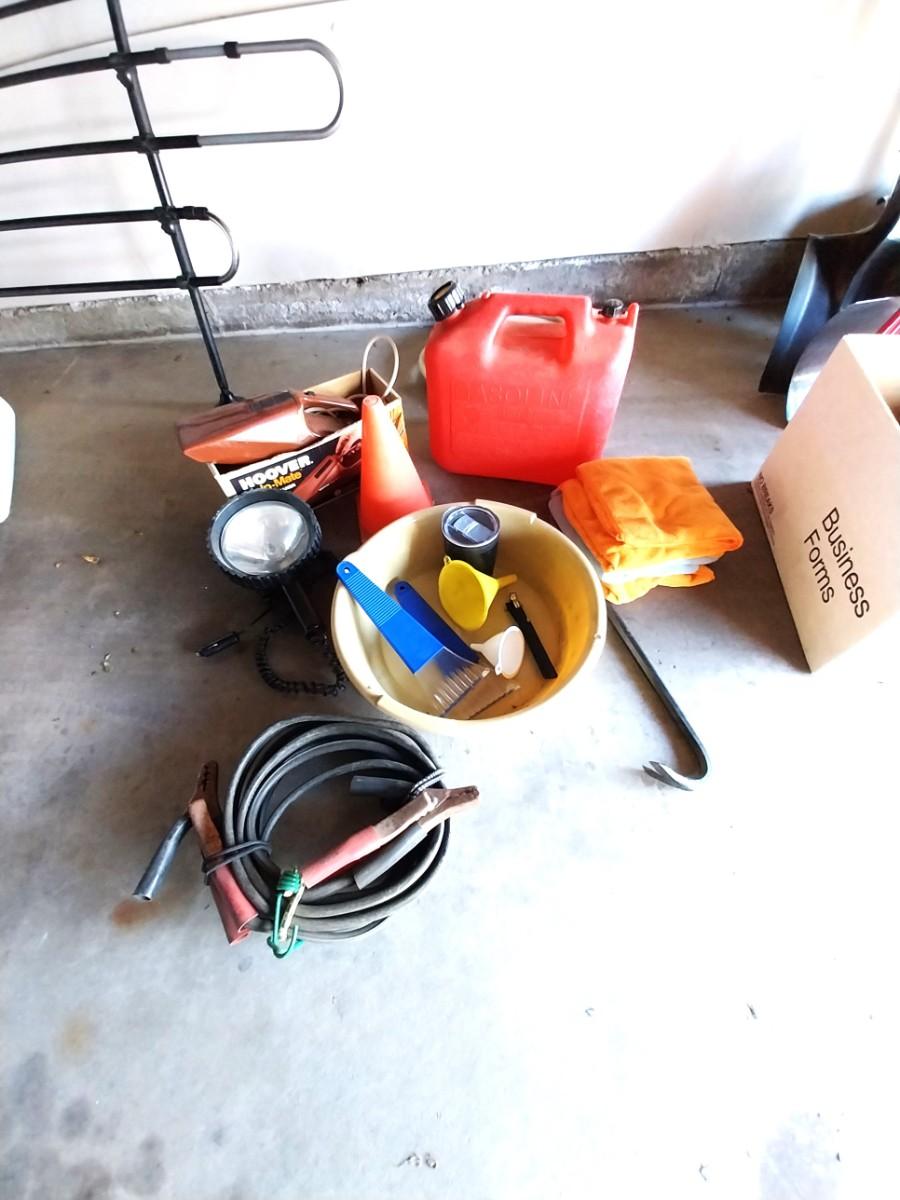 JUMPER CABLES-GASCAN-HANDVAC-CROWBAR AND MUCH MORE