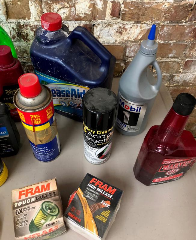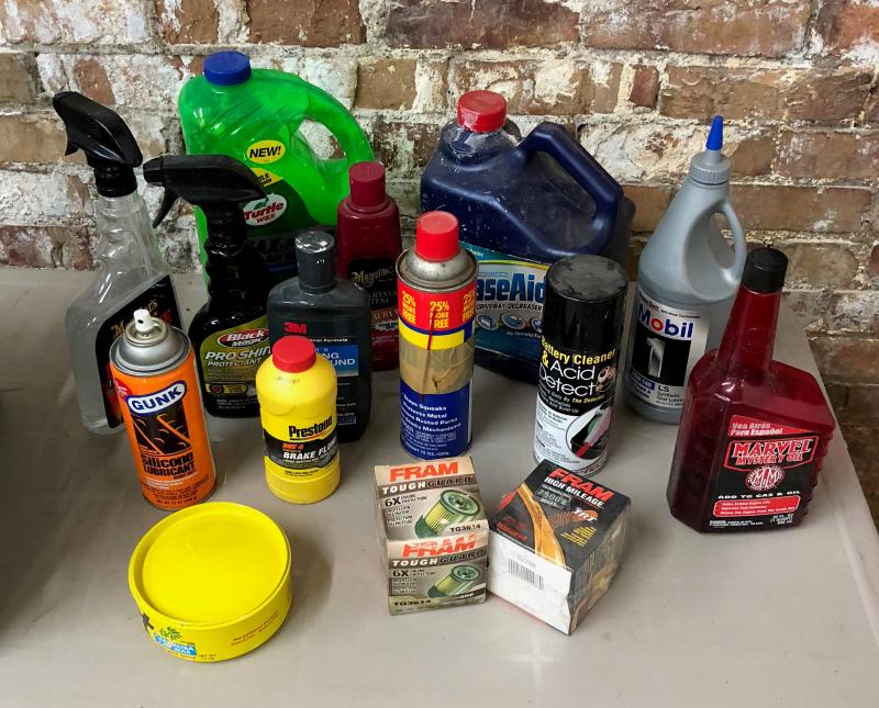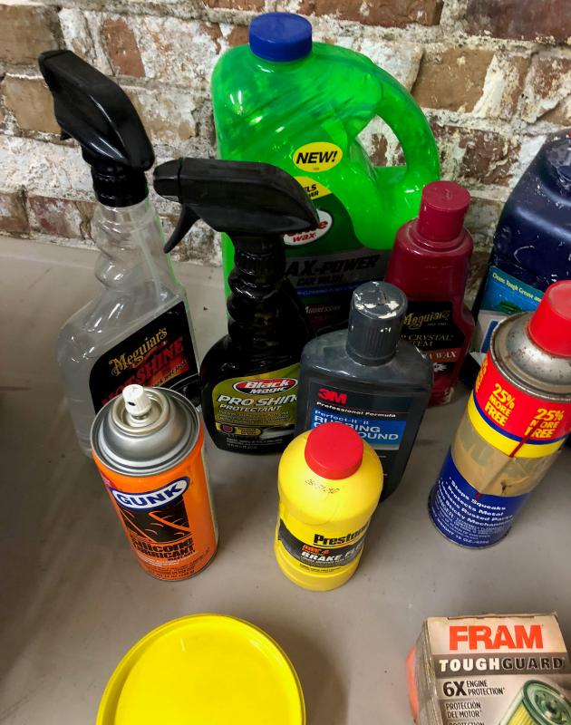 As shown this lot of garage/car car products. and lubricants..