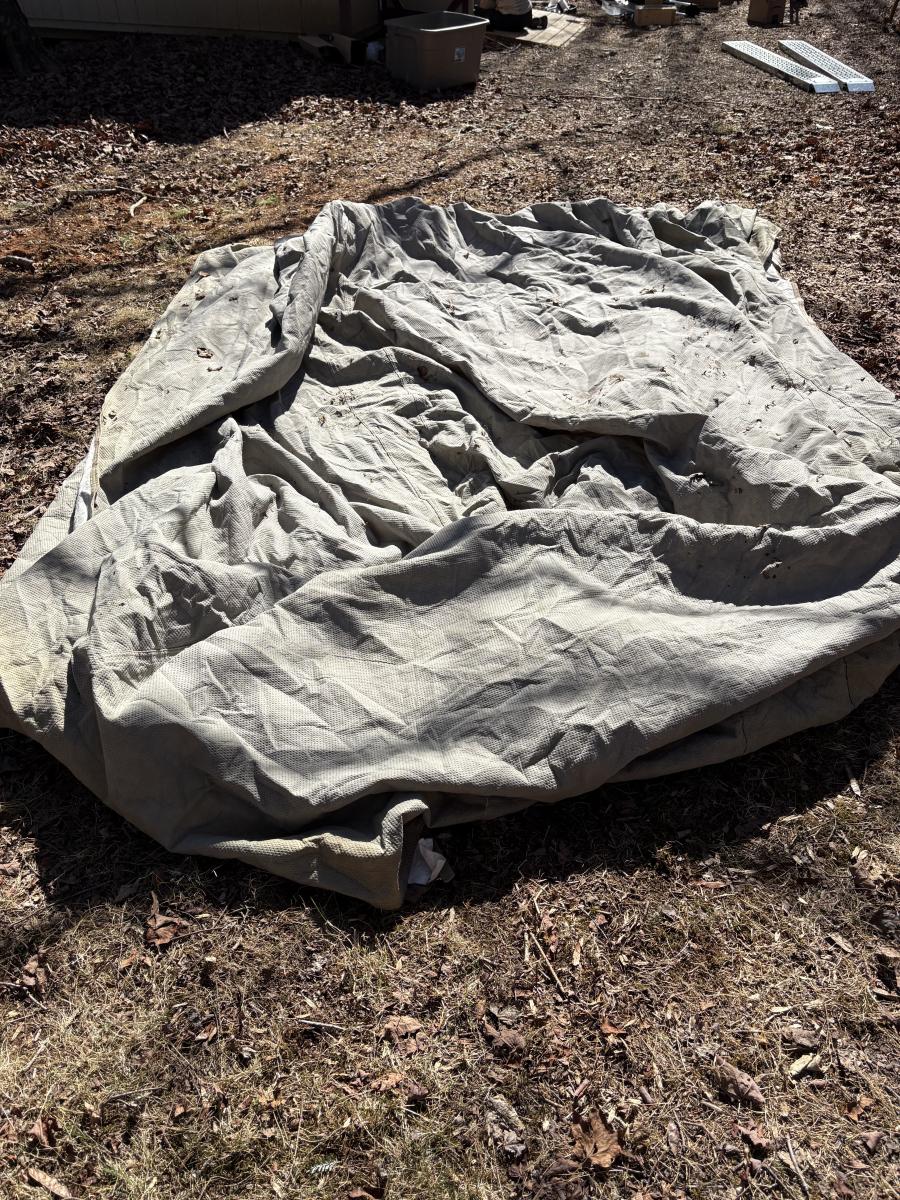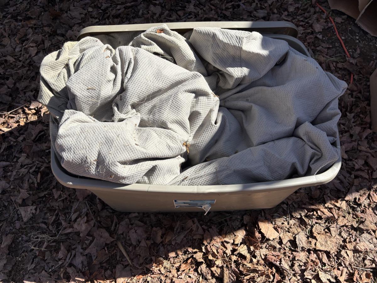 Measurements approximate. Has tie straps and does not appear to have any holes. Gray plastic tub included.