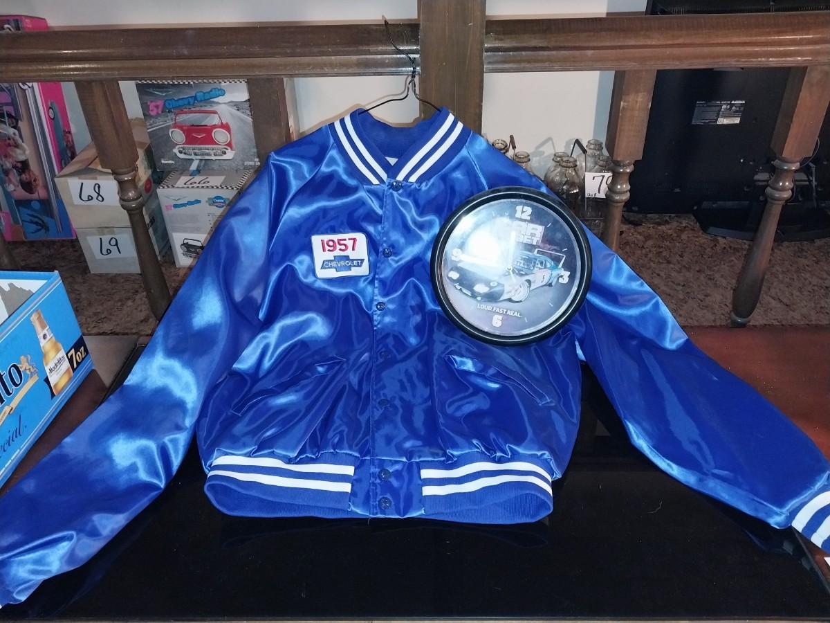 CAR CRAFT WALL CLOCK AND '57 CHEVROLET WINDBREAKER XL