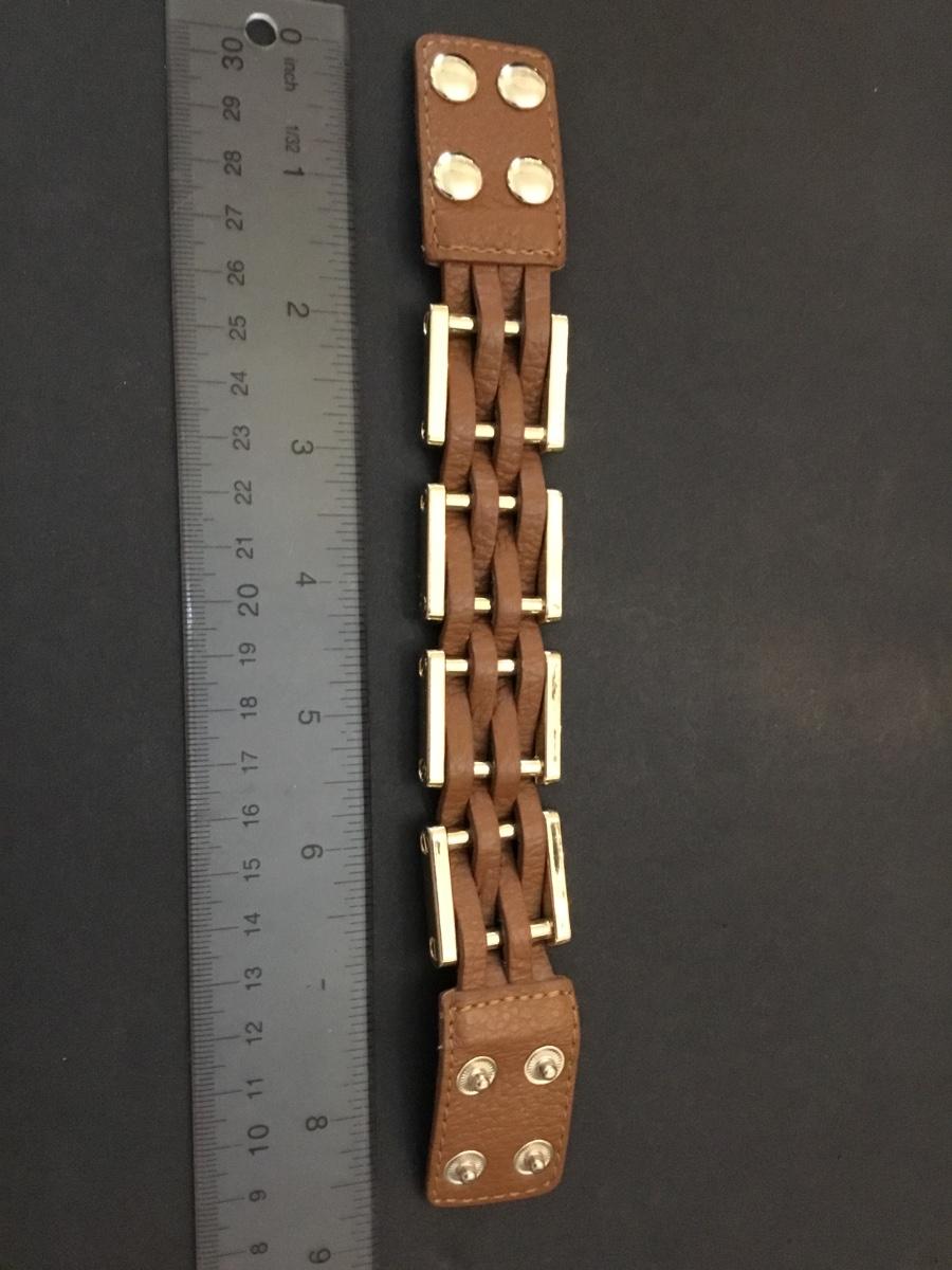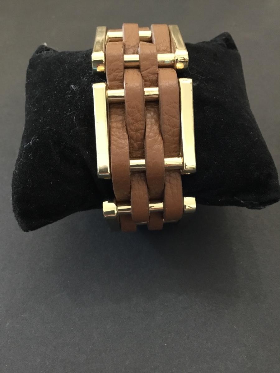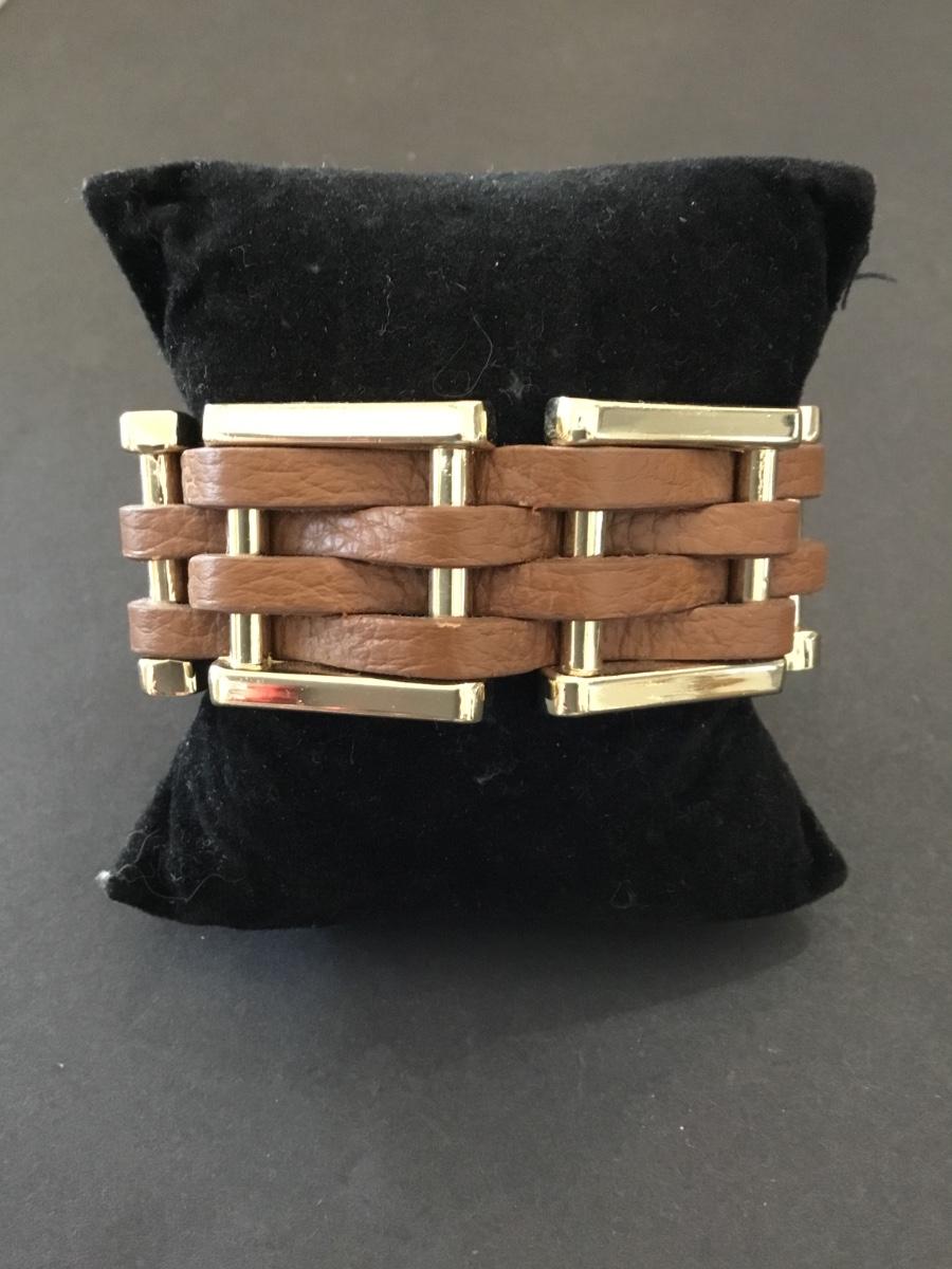 Cara ny Gold tone, leather woven bracelet