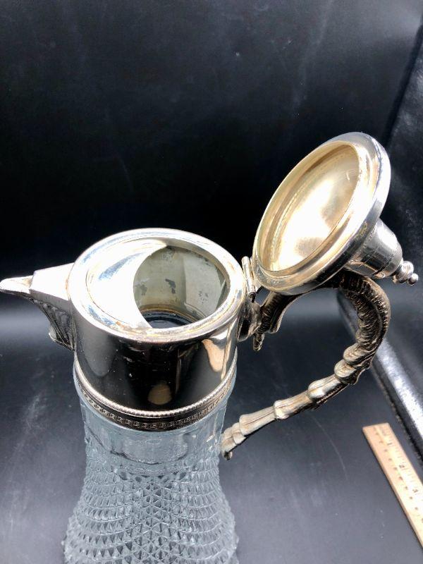 Vintage Silver Plate and Glass Water/Wine Pitcher Carafe With Ornate Handle YD# 022-0222