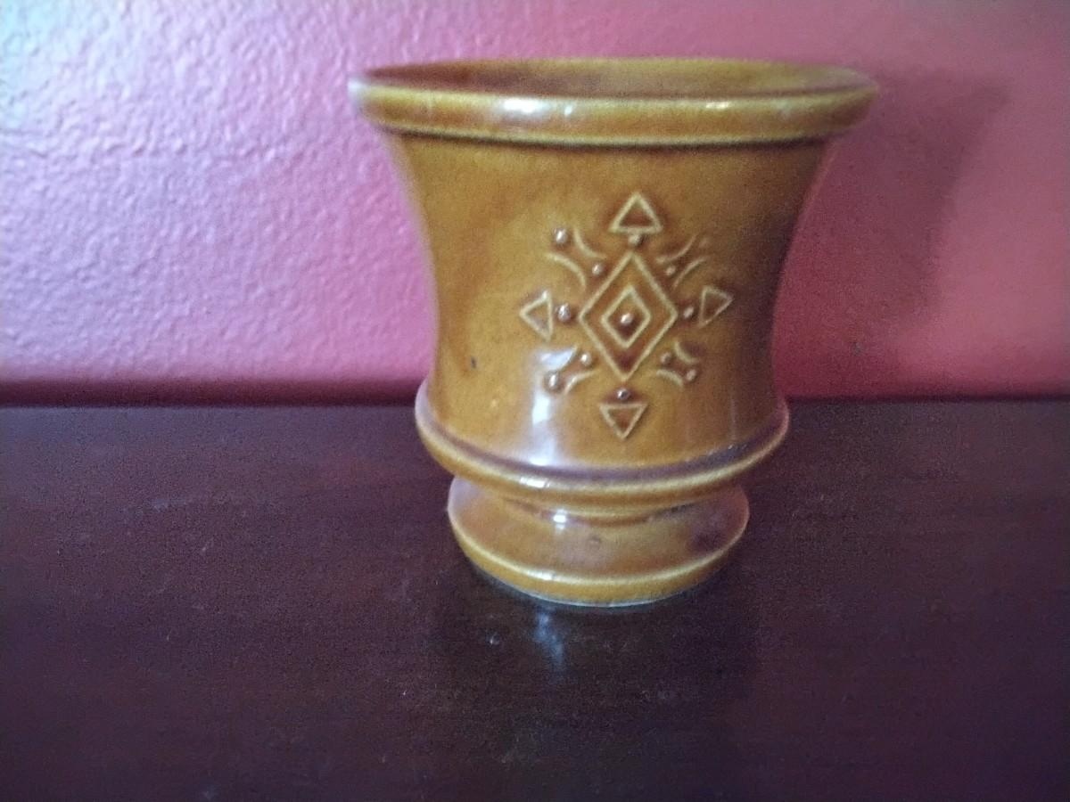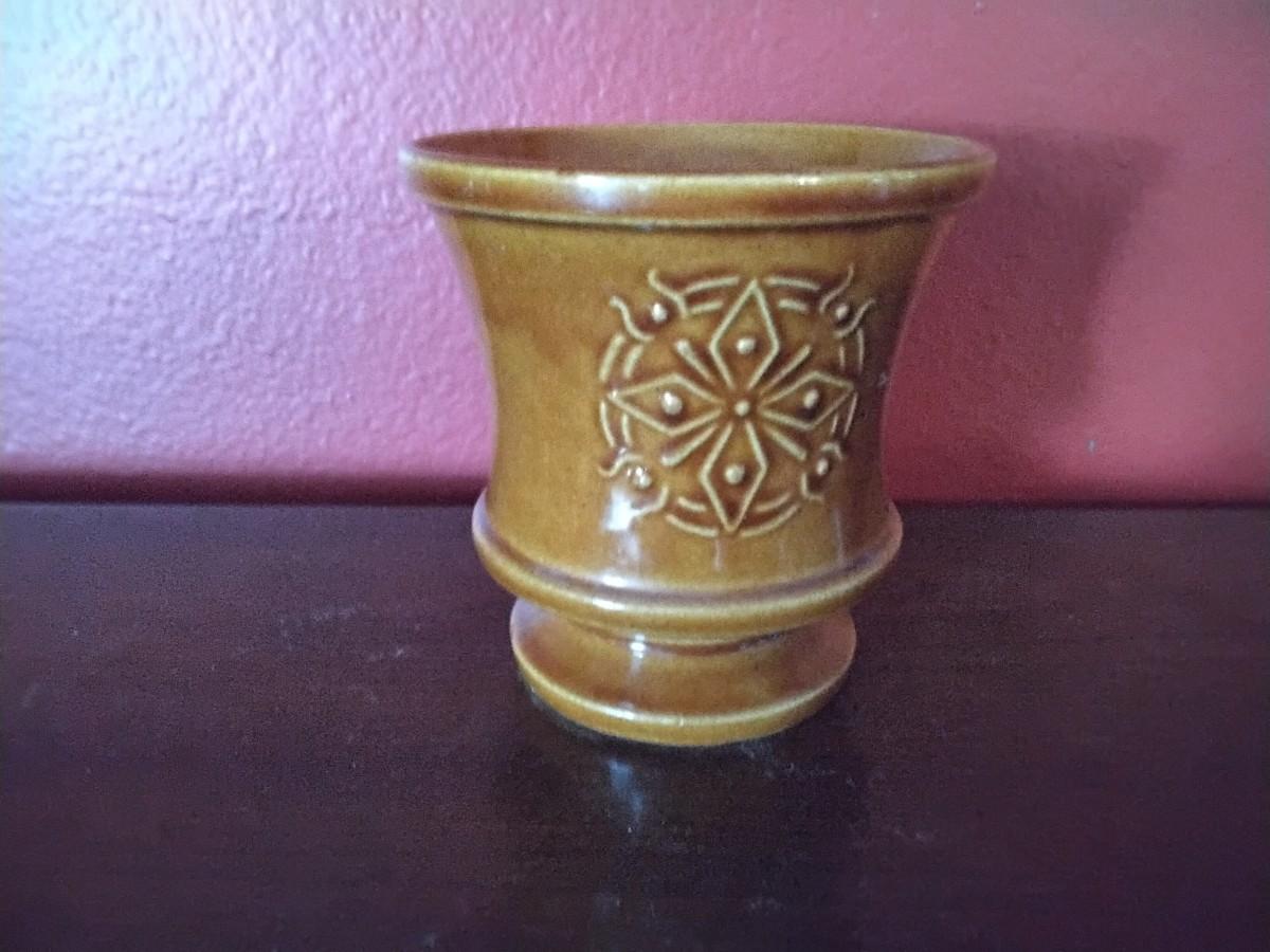 Caramel Brown Mccoy Leaf Vase circa 1950