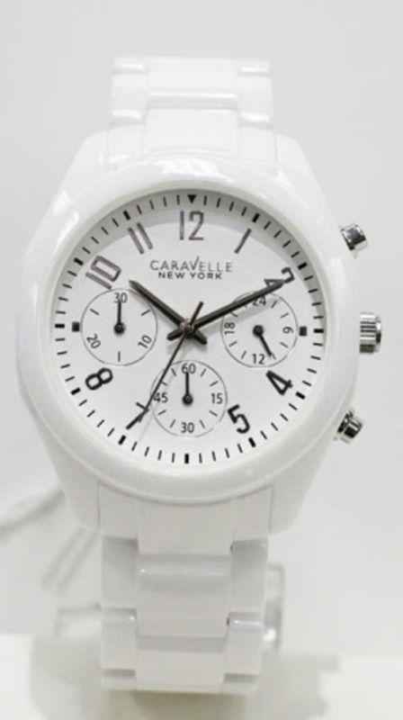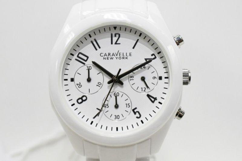 Caravelle 45L145 Women's New York Ceramic White Dial Chrono Watch - New In Box