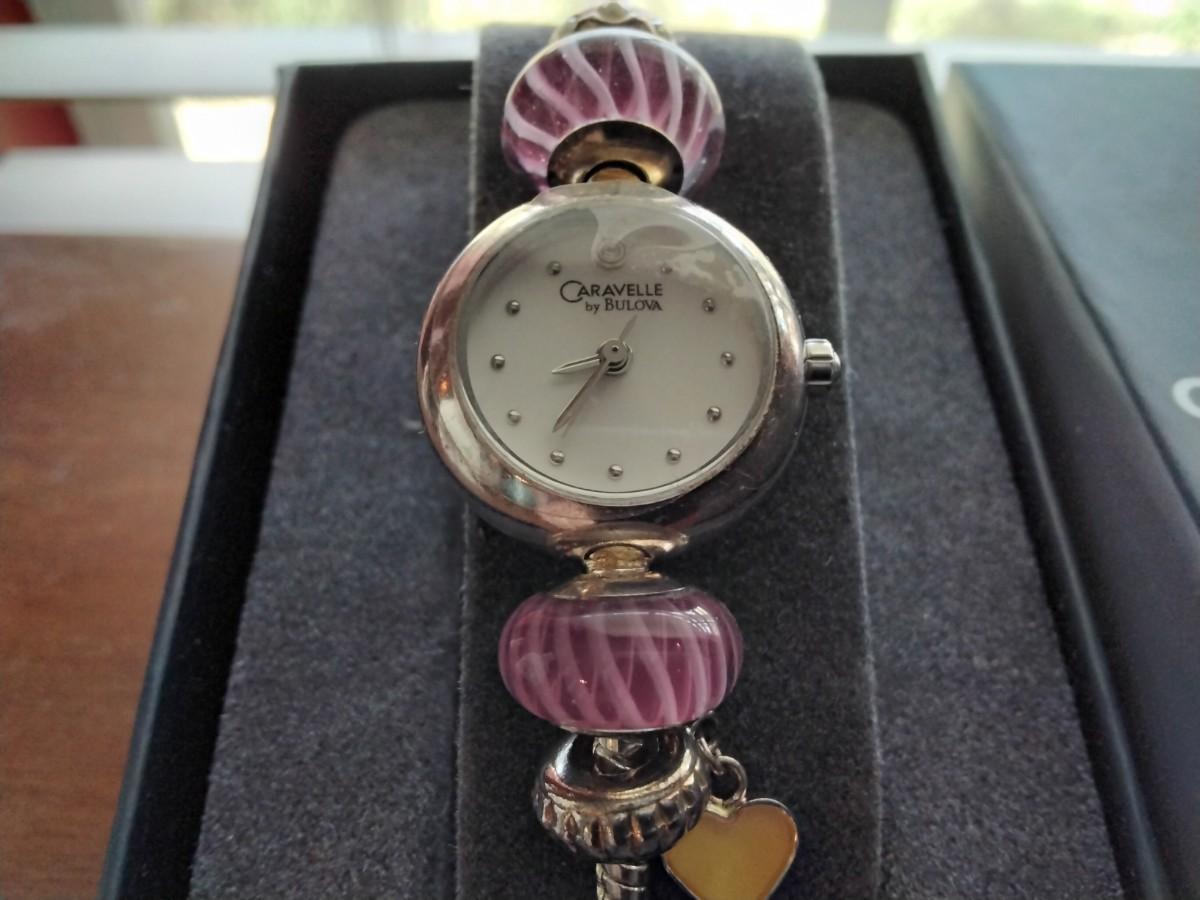 Caravelle by Bulova 43L140 Women's Round White Analog Raspberry Beads Watch