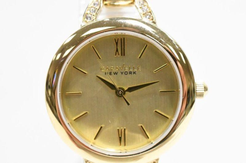 CARAVELLE NEW YORK BY BULOVA WOMEN’S CRYSTAL GOLD-TONE BANGLE WATCH 44L129