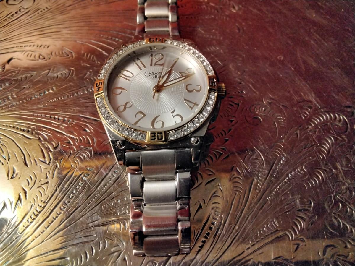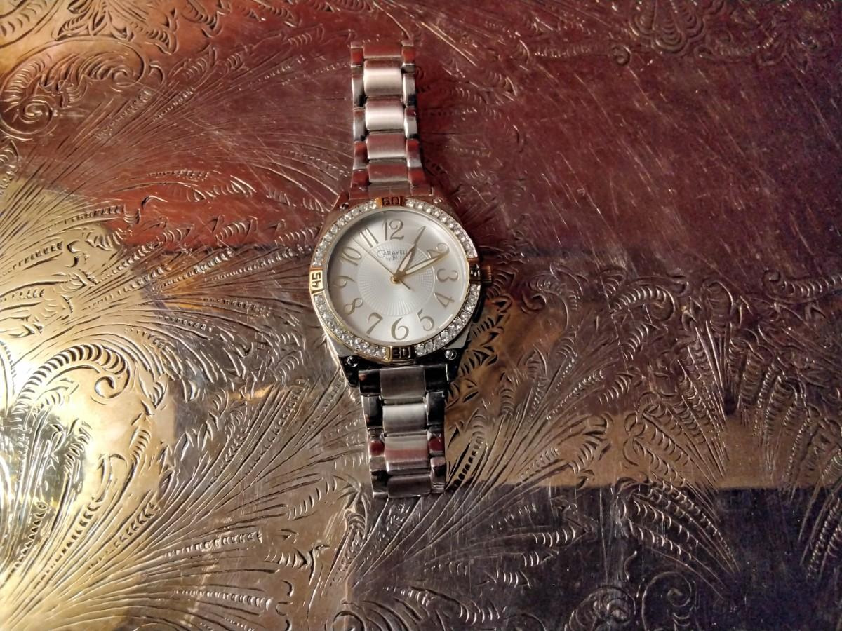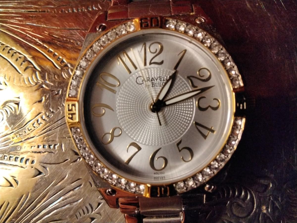 This beauty has a gorgeous face with diamonds surrounding it. Glow in the dark hands this watch is brand new, never worn and a beauty.