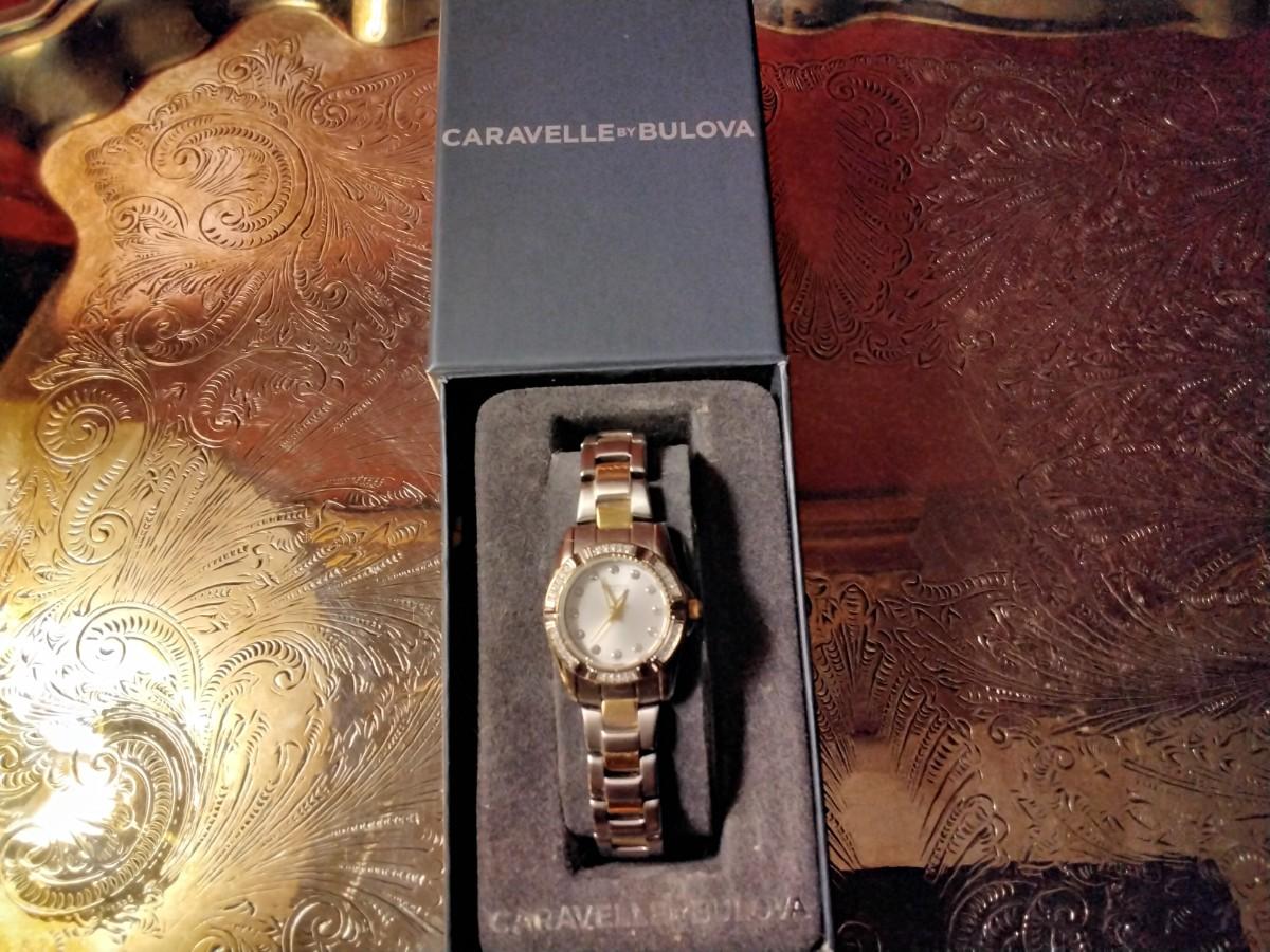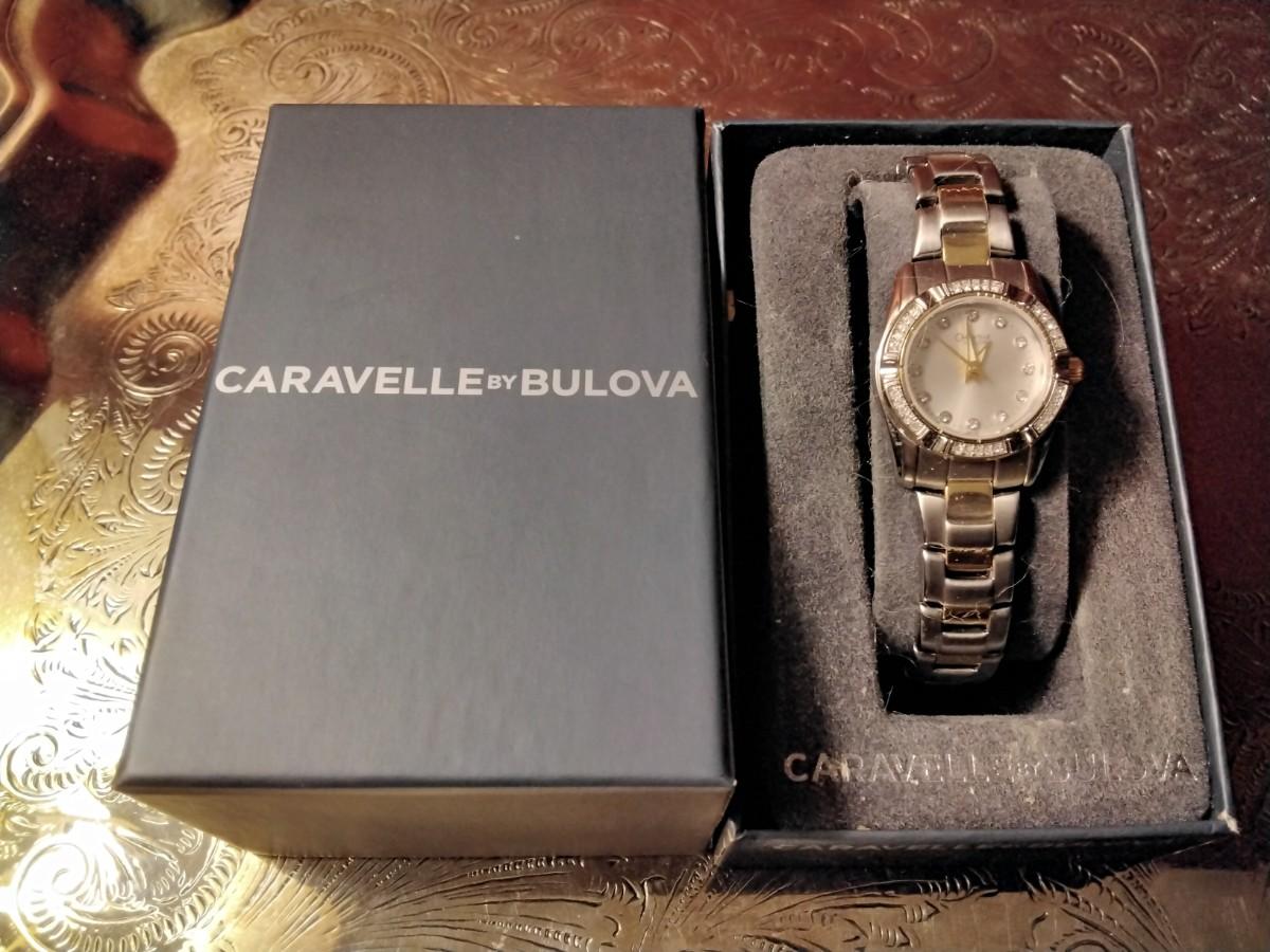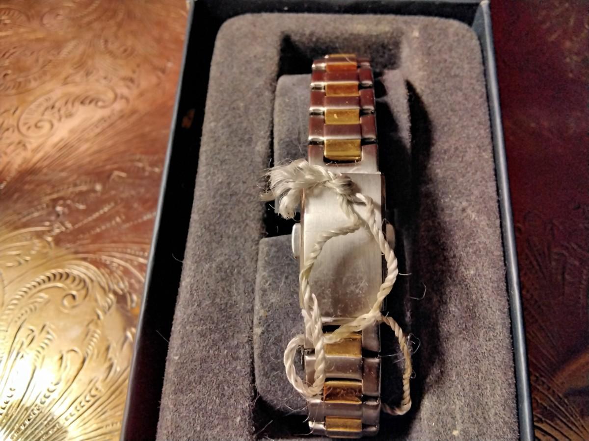 This beauty has a gorgeous face with diamonds surrounding it. Glow in the dark hands this watch is brand new, never worn and a beauty.