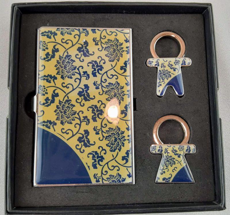 Nice looking RFID card holder with a boy and girl key holder. Card holder is 3.5 by 2in. and the key clips are 1.5 by 1in.