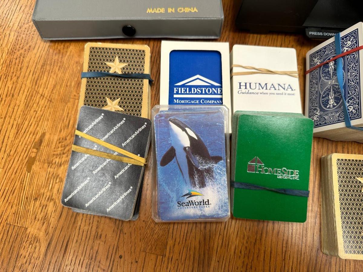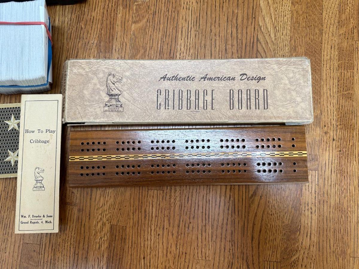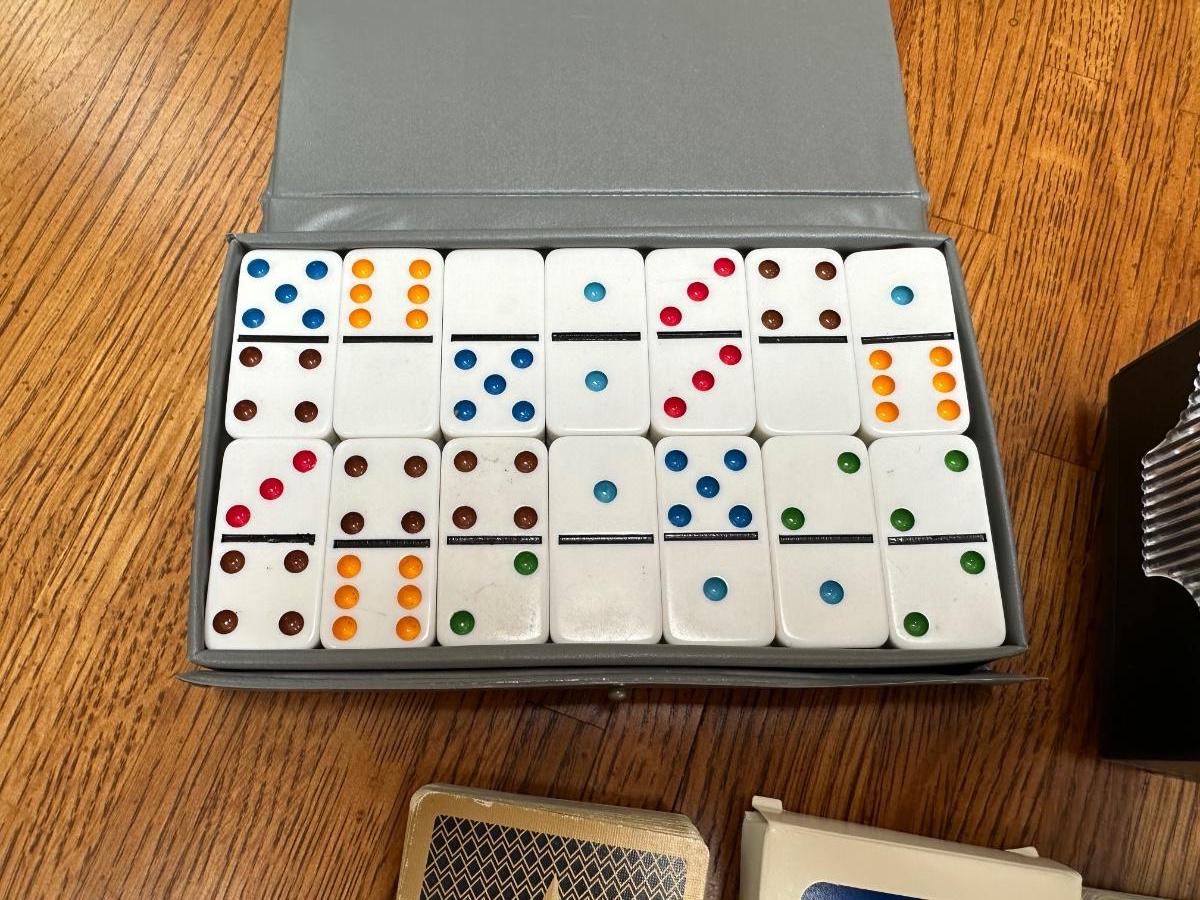 DOMINOS, CRIBBAGE BOARD, DECKS OF CARDS AND CARD SHUFFLER