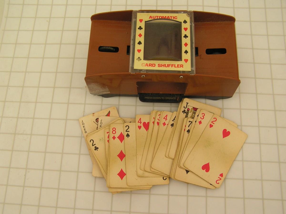 Card shuffler and a REALLY OLD deck of cards short 1 card.